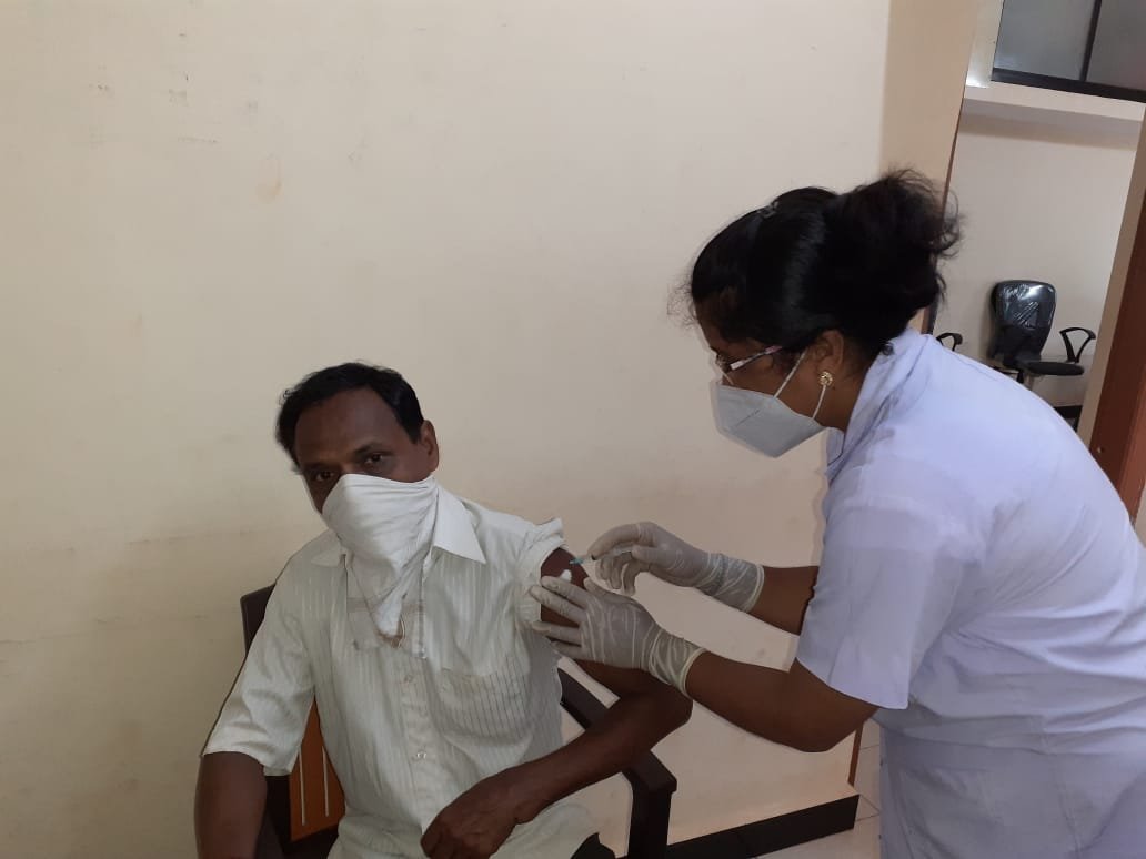 म्हापण गावातील ४५ वर्षावरील नागरीकांसाठी परुळे प्राथमिक आरोग्य केंद्राच्या मार्फत कोविड प्रतिबंधक लसीकरणाचा शुभारंभ म्हापण ग्रामपंचायत येथे करण्यात आला. याआधी प्रा.आ. केंद्रात नागरीकांना जावे लागत असे व त्यामुळे तेथे होणारी गर्दी लक्षात घेवून सरकारने ग्रामपंचायत स्तरावर त्या त्या गावातील नागरीकांना लसीकरण करण्याचा निर्णय घेतला असुन त्याचा शुभारंभ म्हापण ग्रामपंचायत येथे आज करण्यात आला. यावेळी मिळालेल्या १३० लसींच्या कोट्यातून १००% लसीकरण करण्यात आले.या लसीकरणासाठी परुळे प्राथ. आरोग्य केंद्राच्या वैद्यकीय अधिकारी डॉ. धनश्री हिरेमठ, श्रीम. टी. डी. मुणनकर – आरोग्य सहाय्यीका, श्रीम. एस. एस. वालावलाकर – आरोग्यसेविका, श्री. प्रविण परब – आरोग्य्सेवक, श्रीम. रंजना मुंडये – स्त्री परीचर यांनी लसीकरणात सहभाग घेतला. तसेच म्हापण सरपंच श्री. अभय ठाकुर, उपसरपंच श्री. अशोक पाटकर, ग्रा. पं. कर्मचारी श्री. सावळाराम म्हापणकर, तसेच श्री. जगदीश म्हापणकर श्री रघुनाथ जुवाटकर यांनी बहुमोल सहकार्य केले.