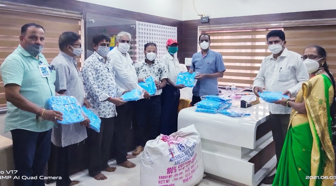 विश्व हिंदु परिषद प्रखंड – वेंगुर्लेच्या वतीने वेंगुर्ले नगरपरिषदेस ६० पीपीई कीट व ५० मास्क नगराध्यक्ष दिलीप उर्फ राजन गिरप व मुख्याधिकारी डाॅ. अमितकुमार सोंडगे यांच्याकडे सुपूर्द करण्यात आले.डाॅ. दिलीप पवार , शास्त्रज्ञ (मुंबई) व सामाजिक कार्यकर्ते यांच्या माध्यमातून ही पीपीई कीट व मास्क देण्यात आले.यापूर्वी सुद्धा विहिपतर्फे वेंगुर्ले नगरपरिषदेला पीपीई कीट, मास्क व ऑक्सिमीटर देण्यात आले होते.वेंगुर्ले नगरपरिषदेत आयोजित करण्यात आलेल्या या कार्यक्रमाला विश्व हिंदु परिषदेचे कोकण विभागाचे प्रकल्प प्रमुख डाॅ. राजन शिरसाठ, वेंगुर्ले प्रखंडाचे अध्यक्ष अरुण गोगटे,सह मंत्री महेश वेंगुर्लेकर , महेश सावळ,दिलीप मुळीक, भाजपा जिल्हा सरचिटणीस प्रसन्ना देसाई, भाजपा वेंंगुर्ले तालुकाध्यक्ष सुहास गवंडळकर, नगरपरिषदेच्या प्रशासकीय अधिकारी संगिता कुबल आदी उपस्थित होते.कोव्हिड काळात वेंगुर्ले नगरपरिषदेला अजून काही मदत हवी असल्यास विश्व हिंदु परिषदेतर्फे दिली जाईल असे डाॅ. राजन शिरसाठ यांनी सांगितले.