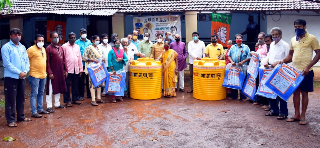 तौक्ते चक्रिवादळाचा फटका वेंगुर्ले तालुक्यातील ग्रामीण भागाबरोबर शहरी भागात बसला.वादळी वाऱ्यामुळे झाड कोसळून घरांची कौले व पत्र्यांचे नुकसान झाले.तसेच पाण्याच्या टाक्या फुटल्या.वेंगुर्ले तालुक्यामध्ये भाजपाच्या वतीने किनारपट्टी भागात सिमेंटचे पत्रे , ताडपत्री , पाण्याची टाकी तसेच रोख रक्कम देऊन मदतकार्य सुरुच ठेवले आहे.वेंगुर्ले शहरातील हाॅस्पीटलनाका व महाजनवाडी येथील अशाच गोरगरीब नागरिकांना भाजपाच्या वतीने जिल्हाध्यक्ष राजन तेली यांच्या हस्ते मदत देण्यात आली. .यावेळी प्रदेश कार्यकारिणी सदस्य शरदजी चव्हाण, जिल्हा सरचिटणीस प्रसन्ना देसाई ,नगराध्यक्ष दिलीप गिरप,तालुकाध्यक्ष सुहास गवंडळकर,शहर अध्यक्ष सुरेंद्र चव्हाण, जि.का.का.सदस्य साईप्रसाद नाईक व वसंत तांडेल, मच्छिमार सेलचे जिल्हाध्यक्ष दादा केळुसकर, ता.सरचिटणीस बाबली वायंगणकर, ता.चिटनीस जयंत मोंडकर,नगरसेवक प्रशांत आपटे,ओबीसी सेलचे शरद मेस्त्री , उदय ( नाना ) महाजन आदी उपस्थित होते यावेळी रेश्मा रमाकांत गोवेकर व पंढरी गणपत मांजरेकर यांना पाण्याच्या टाक्या देण्यात आल्या.तसेच मारुती कुडाळकर,प्रभाकर नेरुरकर , संतोष शिंदे,सुलोचना राणे,सोनु यशवंत परब,नंदकिशोर गवस , मिलिंद रणभिसे,वंदना सोझ, वृंदा चेंदवणकर यांना ताडपत्री देण्यात आल्या.यावेळी मदत दिल्याबद्दल भाजपाचे आभार मानले.