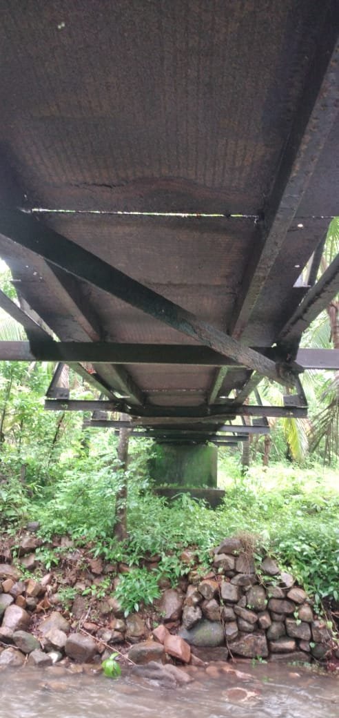 पळसंब गावठणवाडी शाळा नंबर१ या रस्त्यावरील लोखंडी साकवावरुन