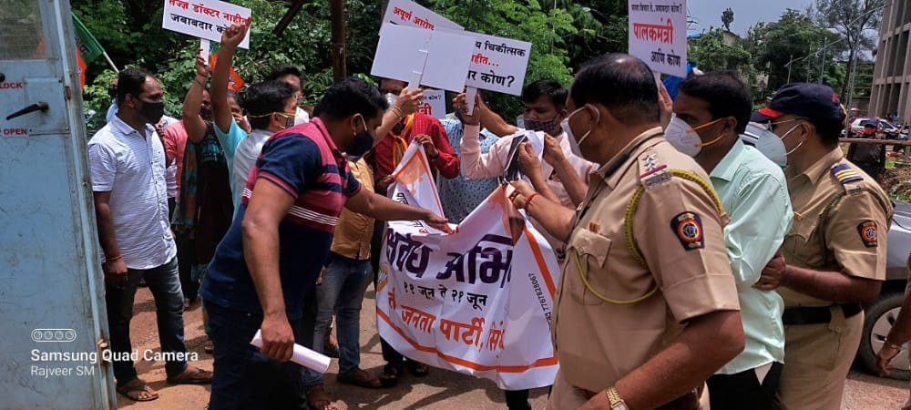 तरी तात्काळ आरोग्य यंत्रणा सुधारणे गरजेचे आहे, याची दखल घेऊन तात्काळ कार्यवाही करावी व उपायोजना करावी ही विनंती भाजपने आपल्या निवेदनाद्वारे कुडाळ तहसीलदार यांच्याकडे केली तर भारतीय जनता पार्टीच्या कार्यकर्त्यांनी तहसीलदार परिसरातील कोविड सेंटर हॉस्पिटल समोर लक्षवेध आंदोलना बाबत पालकमंत्री ठाकरे सरकारच्या विरोधात जोरदार घोषणाबाजी केली. त्यावेळी उपस्थित भाजप पदाधिकाऱ्यांना पोलिसांनी तात्काळ अटक करत कुडाळ पोलिस ठाण्यात हजर केले.