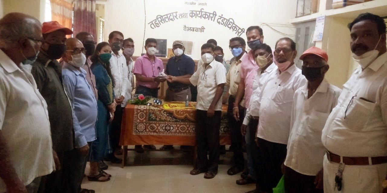 काँग्रेस पक्षाचे राष्ट्रीय नेते राहुल गांधी यांच्या वाढदिवसाचे औचित्य साधून वैभववाडी युवक काँग्रेस च्या वतीने काँग्रेसचे नेते अनंत पवार यांच्या सौजन्याने वैभववाडी तालुक्यातील पत्रकारांना सॅनिटायझर व मस्कचे वाटप वैभववाडी तहसीलदार रामदास झळके यांच्या हस्ते करण्यात आले.यावेळी सिंधुदुर्ग जिल्हा काँग्रेस सरचिटणीस महेंद्र सावंत, सिंधुदुर्ग जिल्हा युवक काँग्रेस अध्यक्ष देवानंद लुडबे,चिटनिस बाळू,अंधारी,वैभववाडी युवक काँग्रेस अध्यक्ष भालचंद्र जाधव,काँग्रेस नेते आनंद पवार, जिल्हा प्रवक्ते अरविंद मोंडकर, जिल्हा युवा उपाध्यक्ष पल्लवी तारी, ऍड लता मोंडकर,बाळा पांचाळ,मधुकर पाटेकर,सिध्दार्थ कांबळे,शशिकांत वळंजू,बाळा वळंजू,दिलीप रावराणे, सुधाकर लाड,निवासी नायब तहसीलदार ए.के.नाईक,मंडळ अधिकारी पावसकर व पत्रकार उपस्थित होते.