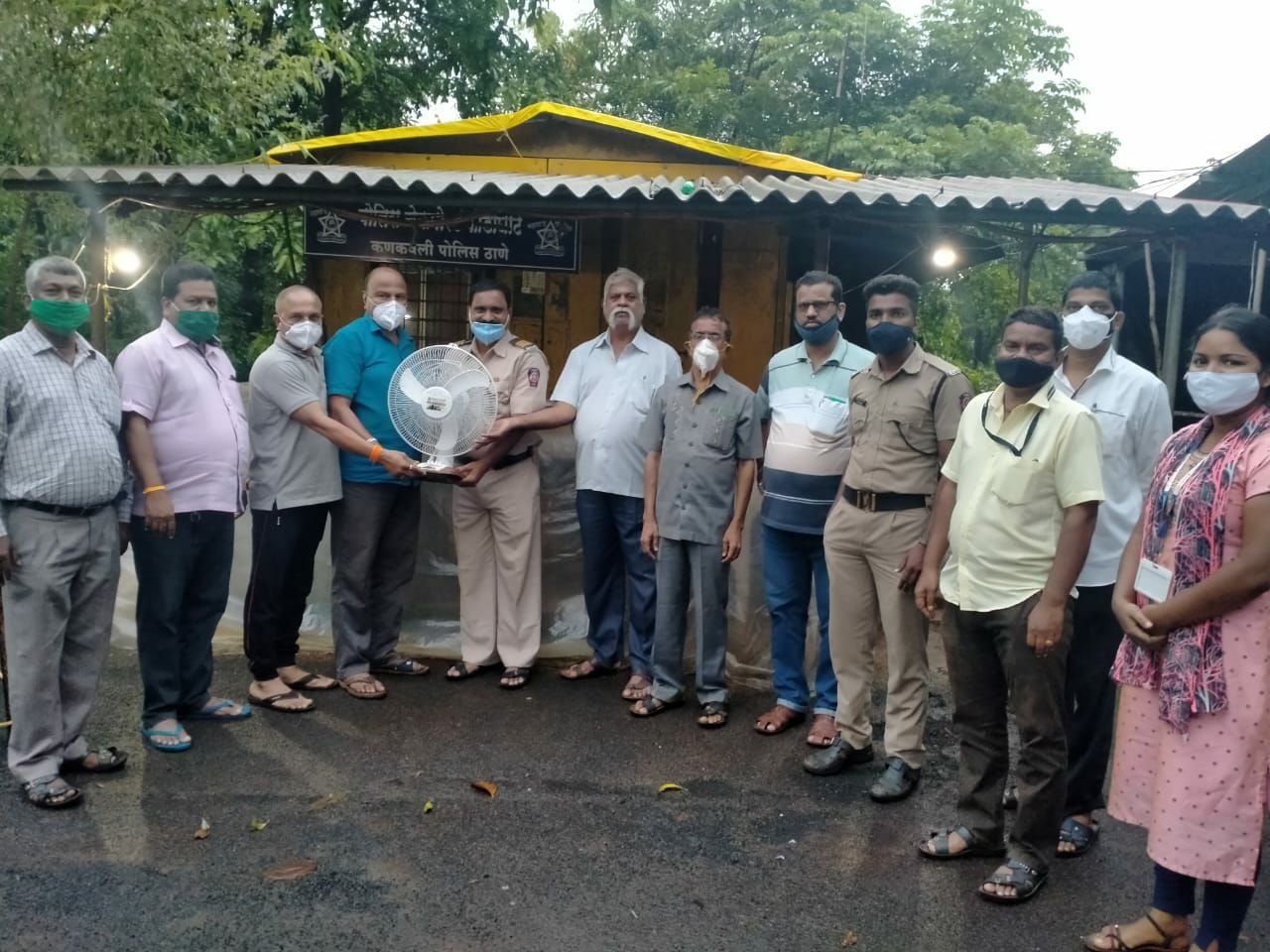 छत्रपती शाहू महाराज यांच्या जयंतीचे औचित्य साधून फोंडाघाट चेकपोस्ट वरील पोलीस व आरोग्य विभागासाठी येथील शितल एजन्सीचे अजित नाडकर्णी यांनी टेबल फॅन एक व सिलिंग फॅन एक भेट दिला.