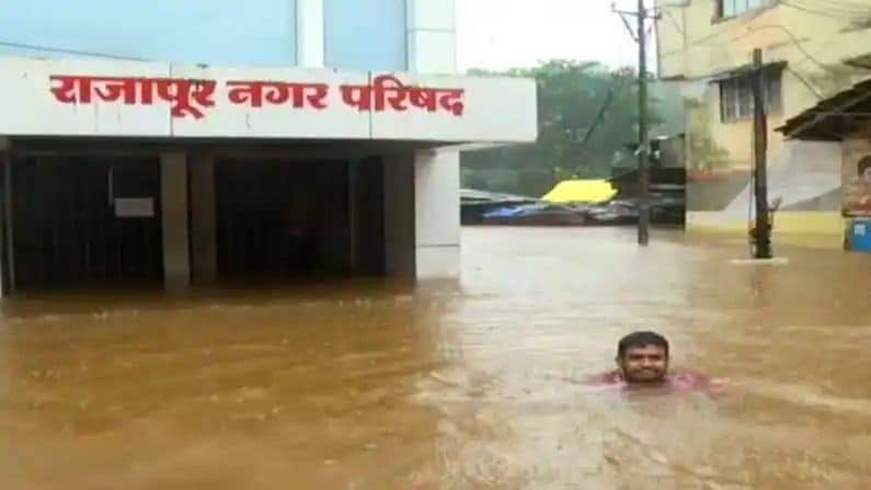 रत्नागिरी जिल्ह्यात मुसळधार पाऊस पडत आहे. तर राजापूर तालुक्यात अर्जुना आणि गोदावरी नदीला पूर आला आहे.त्याशिवाय राजापूर बाजारपेठेत दोन- तीन फुटांपर्यंत पाणी साचले आहे. गेल्या दहा तासांपासून राजापूरला पुराने वेढा दिला आहे. राजपूर बजाारपठेतील शिवाजी पुतळ्यापर्यंत पाणी साचले आहे. राजापूर नगर परिषद अलर्टवर पाहायला मिळत आहे.राजापूर शहरातील जवाहर चौकात पाणी साचले आहे. राजापुरातील जवाहर चौकात तीन फूट पाणी साचले आहे. राजापूर नगर परिषदेने बाजारपेठेतील नागरिकांना इशारा दिला आहे. राजापुरातील अर्जून नदीचे पाणी बाजारपेठेत सामानाची हलवाहलव करण्यास व्यापाऱ्यांची सुरुवात केली आहे.