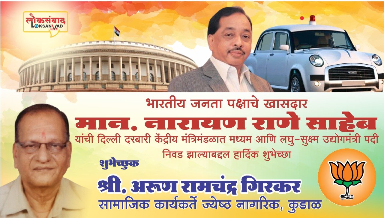 भारतीय जनता पक्षाचे खासदार नारायण राणे साहेब, यांची दिल्लीत दरबारी केंद्रीय मंत्रिमंडळात,मध्यम आणि लघु-शुष्म उदयोगमंत्रीपदी निवड झाल्याबद्दल हार्दिक शुभेच्छा..💐💐