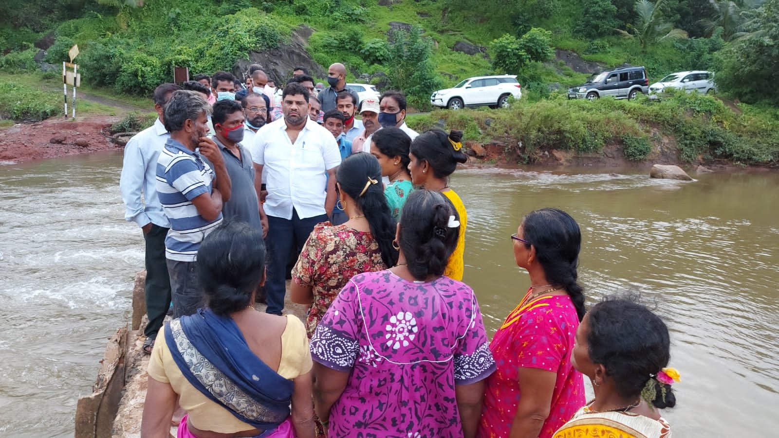 सिंधुदुर्गात पडलेल्या मुसळधार पावसामुळे चिंदर तेरई येथे डोंगर खचून उत्तम घागरे यांच्यासह लगतच्या अन्य घरांना मोठ्या भेगा जाऊन नुकसान झाले. घराच्या नजीकचा भाग खचल्याने बाजूने जाणारा डांबरी रस्ताही फूटभर उंच झाला. यामुळे या घरांना धोका निर्माण झाला असून कुडाळ मालवणचे आमदार वैभव नाईक यांनी काल याठिकाणी भेट देत पाहणी केली. ग्रामस्थांचे म्हणणे समजून घेत त्यांना धीर दिला. सदर घरांच्या बाबत जिल्हाधिकारी के. मंजुलक्ष्मी यांच्यासमवेत लवकरात लवकर बैठक घेऊन यावर मार्ग काढला जाईल अशी ग्वाही आ. वैभव नाईक यांनी दिली. तसेच पुराच्या पाण्यामुळे बांदिवडे भगवंतगड खारभूमी बंधाऱ्याचा वरील भाग वाहून गेला आहे. यामुळे बांधिवडे, भगवंतगड, लब्देवाडी, साटमवाडी, त्रिंबक, गावडेवाडी येथील जमीन खारबाधित झाली आहे. या खार बंधाऱ्याची देखील आ. वैभव नाईक यांनी पाहणी केली. हा बंधारा मंजूर करण्यात आला असून पावसाळ्यानंतर बंधाऱ्याचे काम सुरु करण्यात येणार असल्याचे आ. वैभव नाईक यांनी सांगितले. यावेळी शिवसेना उपजिल्हाप्रमुख बबन शिंदे, उपविभागप्रमुख अनिल गावकर, समीर हडकर, समीर लब्दे, पप्पू परुळेकर, विलास हडपी, संजय हडपी,चंद्रकांत गोलतकर, धनंजय नाटेकर, भाऊ परब, श्रीकांत बागवे, आशु मयेकर, शेखर पालकर, सतीश हडकर आदींसह शिवसेना पदाधिकारी, शिवसैनिक, व ग्रामस्थ उपस्थित होते.