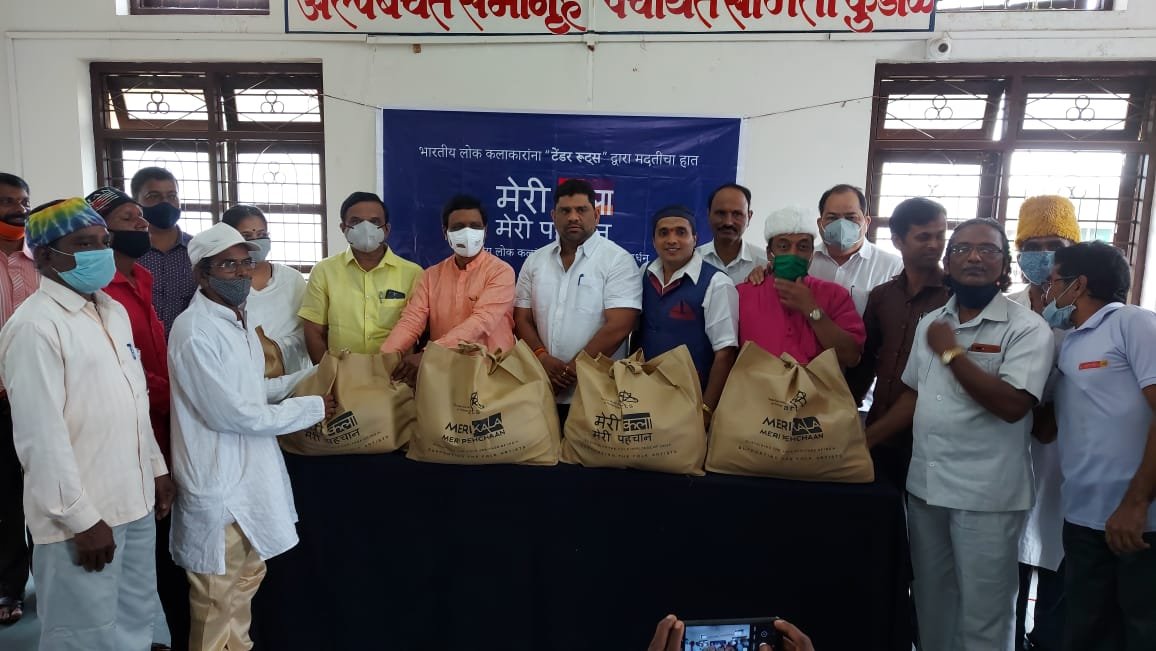 अखिल दशावतारी पारंपारिक लोककला अकादमी (सिंधुदुर्ग) ने टेंडर रूटस् या संस्थेकडे सिंधुदुर्ग जिल्ह्यातील दशावतारी कलाकारांना मदत करण्याचे आवाहन केले होते. टेंडर रूटस् संस्थेने या आवाहनाला प्रतिसाद देत दशावतारी कलाकारांना जीवनावश्यक साहीत्याची किट उपलब्ध करून दिली. मंगळवारी कुडाळ येथे खासदार विनायक राऊत व आमदार वैभव नाईक यांच्या हस्ते दशावतारी कलाकारांना या किटचे वाटप करण्यात आले. कुडाळ पंचायत समिती येथे पार पडलेल्या या कार्यक्रमाला शिवसेना जिल्हा प्रमुख संजय पडते, उपसभापती जयभारत पालव, महिला आघाडी जिल्हा संघटक सौ.जान्हवी सावंत, गटविकास अधिकारी विजय चव्हाण, शिवसेना तालुका प्रमुख राजन नाईक, जि.प.चे माजी अध्यक्ष विकास कुडाळकर, पं.स.सदस्य मिलिंद नाईक, संजय गांधी निराधार योजना समितीचे अध्यक्ष अतुल बंगे, अखिल दशावतारी पारंपारिक लोककला अकादमीचे अध्यक्ष बाळकृष्ण उर्फ दिनेश गोरे, प्रकाश तांबे, राजा सामंत, बबन बोभाटे, आनंद भोगले आदींसह अकादमीचे पदाधिकारी व जिल्ह्यातील दशावतारी कलाकार उपस्थित होते.