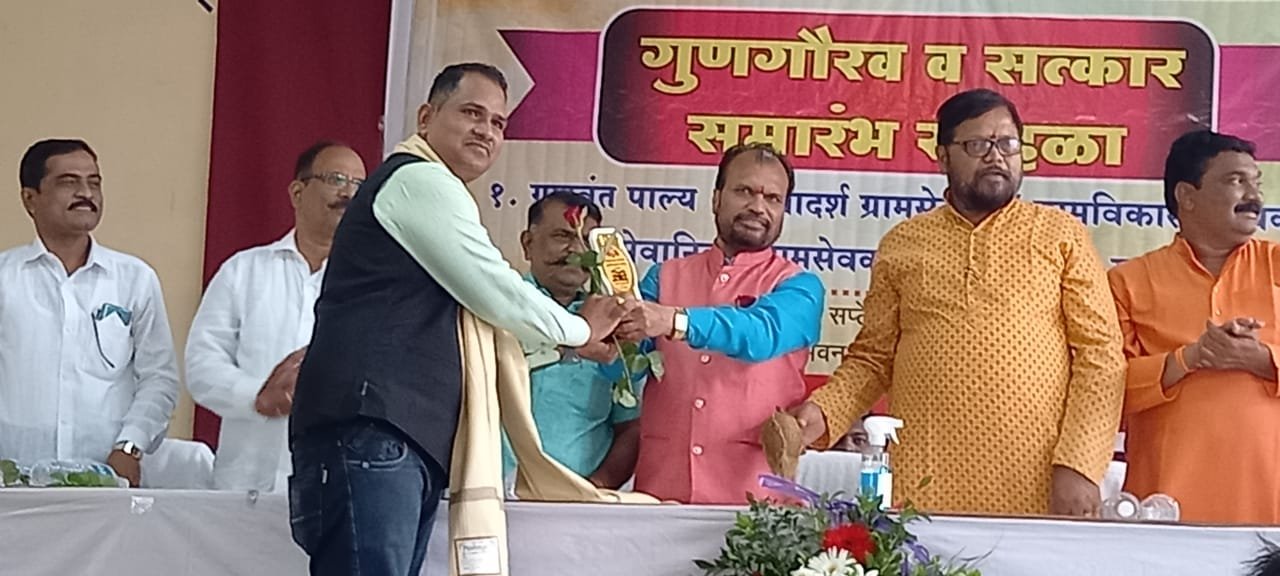 परुळेबाजार ग्रामपंचायत ग्रामसेवक शरद शिंदे यांचा कुशेवाडा ग्रामपंचायतसाठी केलेल्या उल्लेखनिय कामाबद्दल सन्मान करण्यात आला महाराष्ट्र राज्य ग्रामसेवक युनियन जिल्हा शाखा सिंधुदुर्ग यांच्या वतींने गुणगौरव व सत्कार समारंभ सोहळा पार पडला यावेळी आदर्श ग्रामसेवक ,ग्रामविकास अधिकारी सेवानिवृत्त ग्रामसेवक सन्मानप्राप्त ग्रामसेवक तसेच गुणवंत पाल्य यांचा सन्मान करण्यात आला यावेळी परुळेबाजार ग्रामसेवक शरद शिंदे यांनी कुशेवाडा ग्रामपंचायतला सन 2017 -18 साठीचा राज्यस्तरीय पुरस्कार मिळाला त्यावेळी तेकुशेवाडा ग्रामपंचायत साठी त्यांनी उल्लेखनीय काम केले होते यासाठी सन्मान करण्यात आला यावेळी युनियन अध्यक्ष एकनाथ ठाकणे यासह पदाधिकारी उपस्थित होते यावेळी सन्मानपत्र शाल सन्मानचिन्ह देऊन सन्मान करण्यात आला या कार्यक्रमास जिल्ह्यातील ग्रामविकास अधिकारी ग्रामसेवक व त्यांचे कुटुंबीय उपस्थित होते.