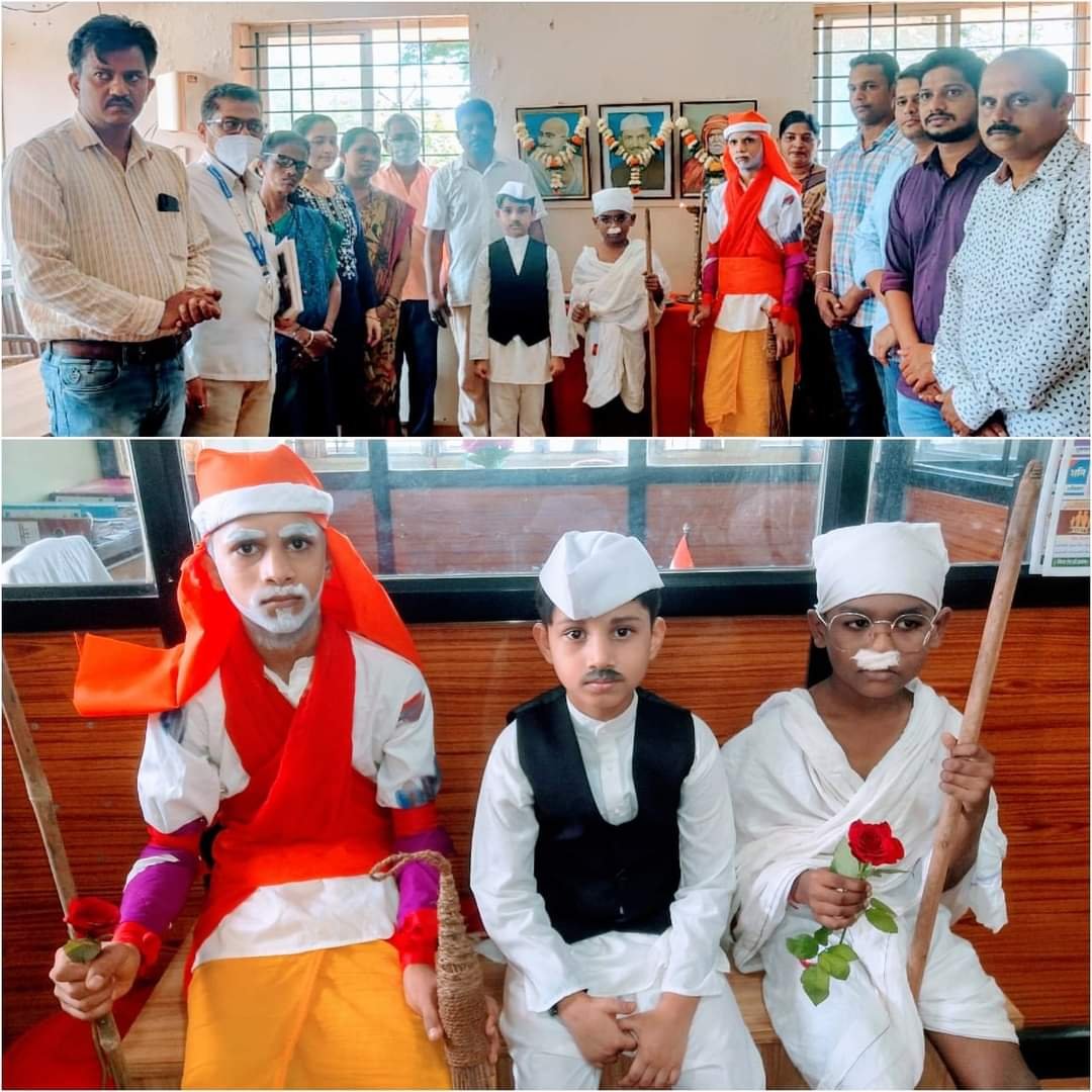 महात्मा गांधीजी याची वेशभूषा मनिष मनोज बांदेकर याने साकारली होती.लाल बहादूर शास्त्री याची वेशभूषा नील नितीन बांदेकर तर संत गाडगेबाबा यांची वेशभूषा गोपाल भिमसेन देसाई याने साकारली होती.