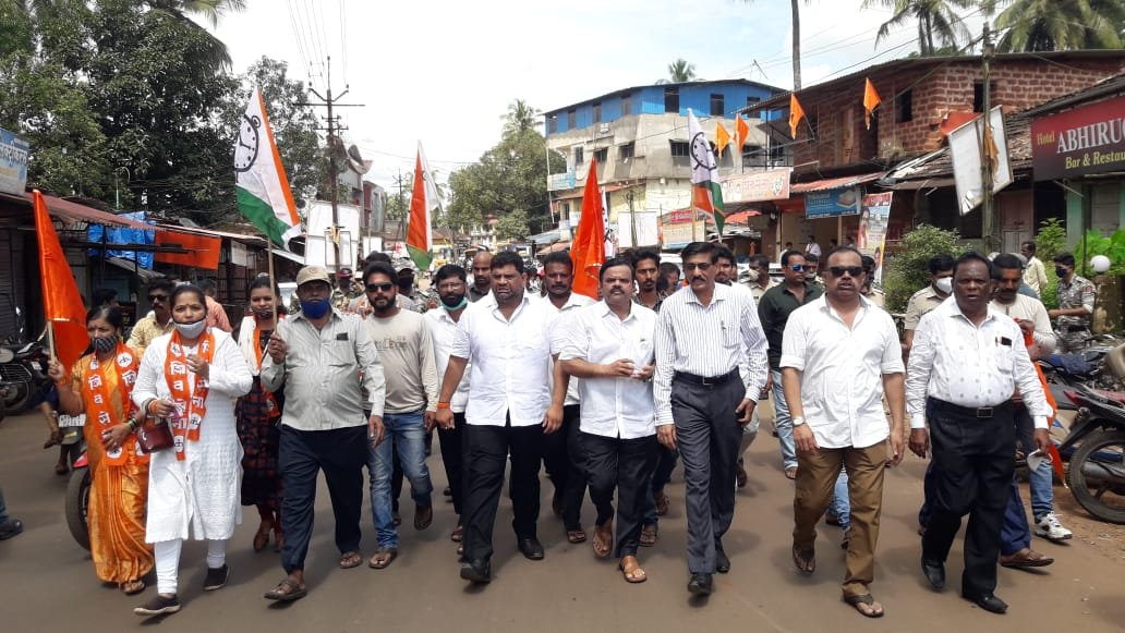 उत्तरप्रदेश लखीमपूर येथील शेतकरी हिंसाचाराच्या निषेधार्थ आज महाविकास आघाडीच्या पदाधिकाऱ्यांनी आमदार वैभव नाईक यांच्या नेतृत्वाखाली कुडाळातही निषेध मोर्चा काढत केंद्रातील मोदी व उत्तरप्रदेश राज्यातील योगी सरकारचा निषेध केला.