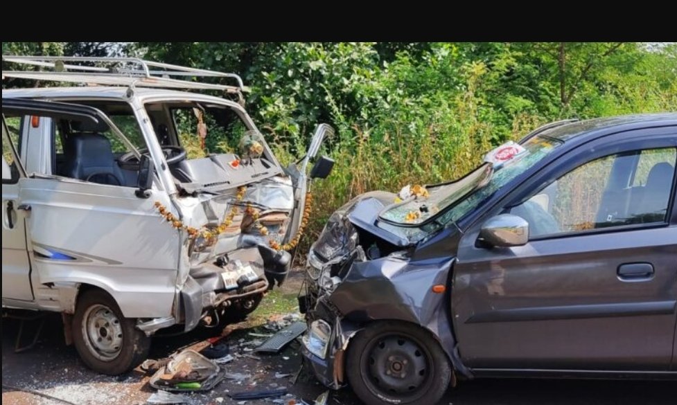 विजयदुर्ग कासार्डे मार्गावर मारुती ओमनी व्हॅन (MH -01 – AH – 9346) आणि अल्टो के टेन (MH -07 -AB – 4560) कारची समोरासमोर टक्कर होऊन झालेल्या अपघातात चौघे प्रवासी जखमी झाले आहेत. विजयदुर्ग कासार्डे रस्त्यावर दारुम येथे हा अपघात आज दुपारी घडला. अपघातात ओमनी व्हॅन मधील दोन प्रवासी जखमी झाले असून निर्मला दीपक समजीसकर, दीपक यशवंत समजीसकर, माधुरी दयानंद मेस्त्री, प्रथमेश दयानंद मेस्त्री अशी जखमींची नावे आहेत. दरम्यान अपघातस्थळी एपीआय शेखर शिंदे, हवालदार वंजारे यांनी धाव घेतली.