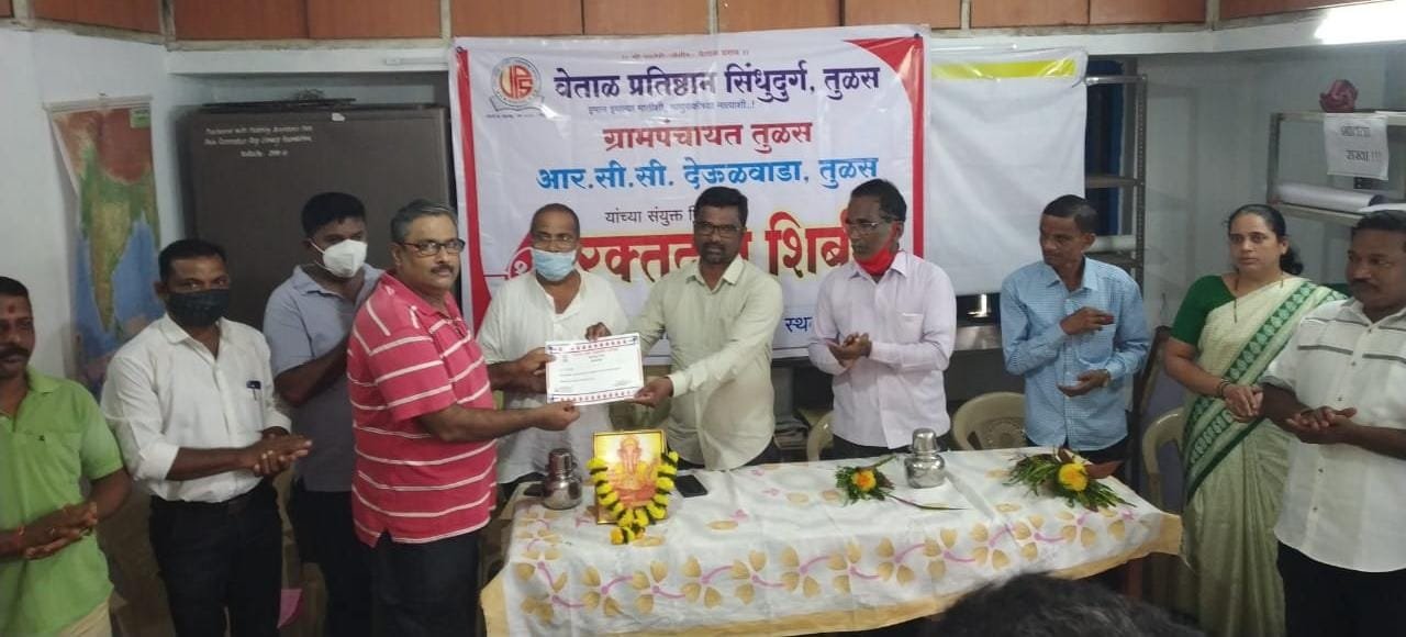 वेताळ प्रतिष्ठान चे अध्यक्ष विवेक तिरोडकर,ग्रा.पं.सदस्य जयवंत तुळसकर, सोनू आरमारकर, श्रद्धा गोरे , प्रतिष्ठान चे सचिव प्रा.सचिन परुळकर, उपाध्यक्ष नाना राऊळ व प्रदीप परुळकर,मंगेश सावंत,सद्गुरू सावंत, अविनाश तुळसकर, अजय नाईक, मिलिंद शेटकर,संजय परब, सिंधुरक्त मित्र प्रतिष्ठान सिंधुदुर्ग उपाध्यक्ष महेश राऊळ, आर.सी.सी. देऊळवाडा चे प्रतिनिधी गौरेश तुळसकर, सुजाता पडवळ आदी उपस्थित होते.वेताळ प्रतिष्ठानने कोरोना कालावधीत जनजागृती करिता सातत्याने उपक्रम राबविले. त्याच बरोबर काळाची गरज जाणून रक्तदान शिबिराचे कोरोना काळात चार वेळा आयोजन करून प्रतिष्ठानने आदर्शवत काम केले, त्याबद्दल सरपंच शंकर घारे यांनी कौतुक केले. तर प्रतिष्ठानचे सचिव प्रा.सचिन परुळकर यांनी रक्तदान सारख्या उपक्रमात सामाजिक संस्था- मंडळे काम करताना दिसून येतात. पण तुळस ग्रामपंचायत या उपक्रम आयोजनात गेली चार वर्षे सातत्याने प्रतिष्ठानला सहकार्य करत आहे. रक्तदान शिबीर आयोजन करणाऱ्या जिल्ह्यातील मोजक्या ग्रामपंचायत असून आपली तुळस ग्रामपंचायात त्यापैकी एक असल्याचे सांगून इतर स्थानिक स्वराज्य संस्थानी यापासून प्रेरणा घेऊन अशी रक्तदान शिबीरे आयोजित करावीत, अशी अपेक्षा व्यक्त करत तुळस ग्रामपंचायत व रक्तदात्यांचे आभार व्यक्त केले.यावेळी सिंधुरक्त मित्र प्रतिष्ठान सिंधुदुर्गचे अध्यक्ष प्रकाश तेंडोलकर, जिल्हा कार्यकारिणी सदस्य एकनाथ चव्हाण,सावंतवाडी तालुका सचिव बाबली गवंडे,सनी रेडकर यांनी रक्तदान शिबिरास भेट देऊन शुभेच्छा दिल्या.