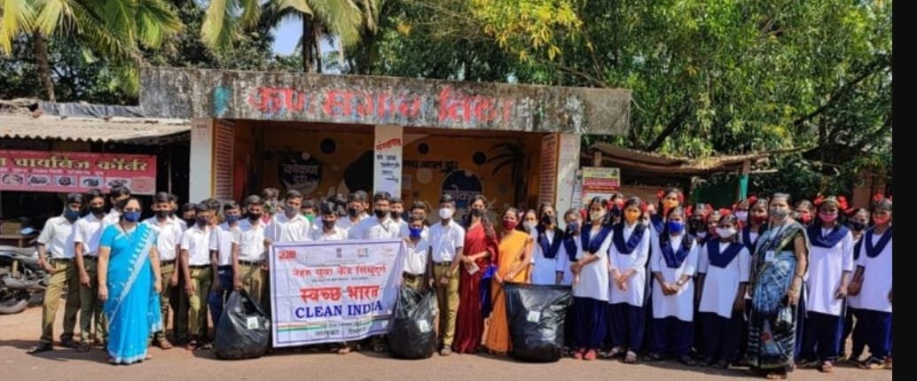 स्वतःच्या आसपासचा परिसर स्वच्छ ठेवावाच पण इतर ठिकाणीही स्वच्छ्ता राखावी असा विद्यार्थ्यांमध्ये सामाजिक बांधिलकी रुजवणारा संदेश मुख्याध्यापिका पूजा कोरगावकर यांनी केले.