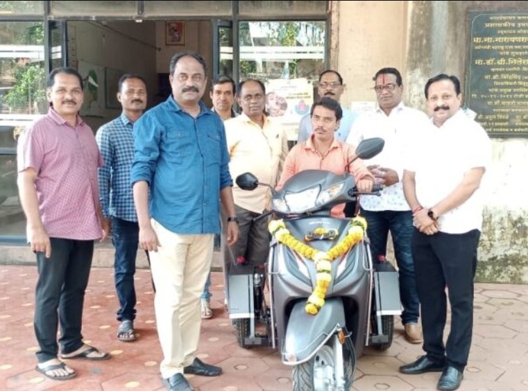 कणकवली नगरपंचायतच्या उत्पन्नातील 5 % दिव्यांग कल्याण निधीतून शहरातील दिव्यांग स्वप्नील काका बागवे याला नगराध्यक्ष समीर नलावडे यांच्या हस्ते ऍक्टिव्हा दुचाकी प्रदान करण्यात आली. नगरपंचायत च्या उत्पन्नातील 5 टक्के निधी हा दिव्यांगांसाठी कल्याण निधी म्हणून वापरला जातो. याच निधीतून दिव्यांग स्वप्नील याला ही दुचाकी आज प्रदान करण्यात आली. स्वप्नील हा कणकवली शहरात सकाळी दूध विक्री करतो. त्यानंतर दिवसभर कांदे-बटाटे तसेच भाजी विक्री करून आपला उदरनिर्वाह करतो. स्वप्नीलच्या या धडपडीला आता कणकवली नगरपंचायतने दिलेल्या दुचाकीमुळे वेग येणार आहे. नगरपंचायतने दिलेल्या दुचाकीबद्दल स्वप्नीलने नगराध्यक्ष नलावडे व प्रशासनाचे आभार मानले. यावेळी उपनगराध्यक्ष बंडू हर्णे, आरोग्य सभापती संजय कामतेकर, माजी उपनगराध्यक्ष किशोर राणे, माजी नगरसेवक बंडू गांगण, बाळा सावंत, किशोर धुमाळे आदी उपस्थित होते.