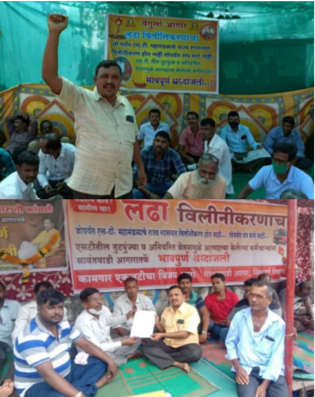१४ नोव्हेंबर रोजी आद्यक्रांतीगुरू लहुजी वस्ताद साळवे यांच्या २२७ व्या जयंतीचे औचित्य साधून लहुजी साळवे कर्मचारी कल्याण महासंघ शाखा सिंधुदुर्ग वतीने एसटी विलगीकरणाच्या संपाचा पाठपुरावा करत आज सिंधुदुर्ग जिल्ह्यातील वेंगुर्ला, सावंतवाडी आगाराच्या एसटी कर्मचाऱ्यांशी सुसंवाद साधला व्हा विलिनीकरणाचा लढा लसाकमच्या वतीने “एसटी विलगीकरणाचा लढा अधिक तीव्र करु” असे प्रतिपादन लसाकम सिंधुदुर्ग जिल्हाध्यक्ष सुभाष साबळे यांनी केले.यावेळी संघटनेचे पदाधिकारी व अनेक एसटी कर्मचारी उपस्थितीत होते.