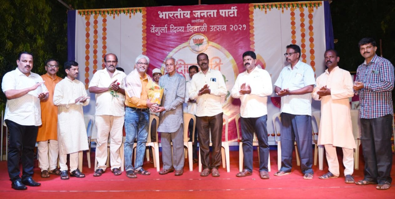 जे.जे.स्कुल ऑफ आर्ट चे निवृत्त प्राध्यापक व वेंगुर्ले नगरपरिषदेचे स्वच्छतेचे ब्रँड अॅबेसेडर सुनील नांदोसकर यांचा सत्कार भाजपा प्रदेश कार्यकारिणी सदस्य शरदजी चव्हाण यांच्या हस्ते करण्यात आला.भाजपा वेंगुर्ले च्या वतीने कॅम्प येथील त्रिवेणी गार्डन मध्ये दिव्य दिवाळी उत्सवाअंतर्गत तीन दिवस सांस्कृतिक कार्यक्रमांचे आयोजन करण्यात आले होते.यावेळी समारोपाच्या दिवशी सत्कार कार्यक्रमाचे आयोजन केले होते.सुनील नांदोसकर यांनी सेवेत असताना दिल्ली येथील संचलनासाठी महाराष्ट्र राज्याचा चित्ररथ बनवला,तसेच वेंगुर्ले नगरपरिषदेचे कलादालनातल्या प्रतिकृती,नगरपरिषदेचा सिंबाॅल ,मच्छिमार्केट व क्राॅफर्ट मार्केट मधील रेखाचित्रे,वेंगुर्ल्याच्या प्रवेश द्वाराचे डिझाईन तसेच नगरपरिषदेच्या सभागृहातील वेंगुर्लेची शिल्पकृती इत्यादी कामे त्यांच्या मार्गदर्शनाखाली तयार केली.त्यामुळे वेंगुर्लेच्या सौंदर्यात भर पडली, म्हणूनच त्यांच्या कार्याची दखल घेऊन भाजपा च्या वतीने सत्कार करण्यात आला.या सत्कार प्रसंगी नगराध्यक्ष दिलीप उर्फ राजन गिरप,जिल्हा सरचिटणीस प्रसन्ना देसाई, तालुकाध्यक्ष सुहास गवंडळकर ,जि.का.का.सदस्य वसंत तांडेल ,मच्छिमार सेलचे जिल्हाध्यक्ष दादा केळुसकर, नगरसेवक प्रशांत आपटे, ता.सरचिटणीस बाबली वायंगणकर, पी.के.कुबल, खर्डेकर महाविद्यालयाचे संजय पाटील, सद्गगुरु संगीत विद्यालय सावंतवाडीचे निलेश मेस्त्री, कात्रे सर व निवेदक काका सावंत उपस्थित होते.