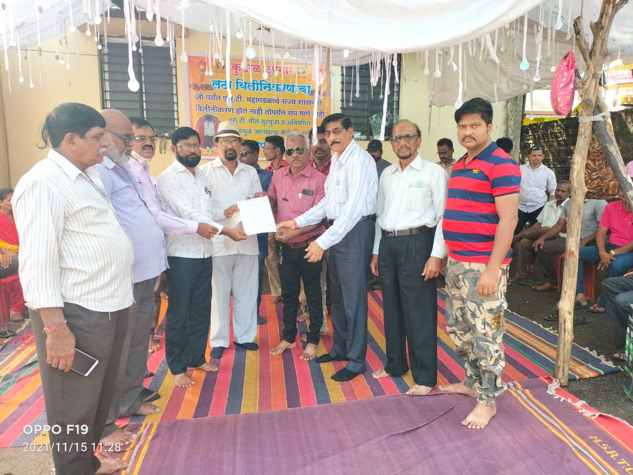 एसटी महामंडळाच्या कर्मचाऱ्यांचा संप आपल्या मागण्यासाठी गेले आठ दिवसांपासून सुरू असून आज राष्ट्रवादी काँग्रेसच्या पदाधिकाऱ्यांनी कुडाळ येथे संपस्थळी भेट देऊन राष्ट्रवादी काँग्रेस पक्ष आपल्या सोबत आहे. महाविकास आघाडी सरकारने काही प्रमाणात मागण्या मान्य केल्या आहेत.विलीनीकरणाच्या मागणी संदर्भात न्यायालयीन निर्देशानुसार आघाडी सरकारने समिती गठीत केली आहे.त्या समितीचा अहवाल मुदतीत येईल.त्याऺनतर सरकार निर्णय घेईल.त्यामुळे संपकरी एसटी कर्मचाऱ्यांनी थोडा संयम ठेवावा.कुठलाही टोकाचा निर्णय घेऊ नये.आघाडी सरकार तुमच्या सोबत आहे.संपकरी कर्मचाऱ्यांच्या मागण्या ह्या रास्त आहेत.आम्ही सिंधुदुर्ग जिल्हा राष्ट्रवादी काँग्रेसच्या माध्यमातून मा अमित सामंत यांच्या माध्यमातून लवकरच राष्ट्रवादी काँग्रेसचे राष्ट्रीय अध्यक्ष खासदार मा,शरद पवार साहेब.अर्थमंत्री तथा उपमुख्यमंत्री नाम, अजितदादा पवार यांची भेट घेऊन संपाबाबत योग्य तोडगा काढण्यासाठी नक्कीच प्रयत्न करून आपणांस न्याय मिळवून देण्याचा प्रयत्न करु असे यावेळी राष्ट्रवादी काँग्रेसचे प्रदेश संघटक सचिव मा,काका कुडाळकर यांनी सांगितले.यावेळी जिल्हा सरचिटणीस भास्कर परब, तालुका अध्यक्ष शिवाजीराव घोगळे,अल्प संख्याक जिल्हा कार्याध्यक्ष नझीरभाई शेख, तालुका उपाध्यक्ष साबा पाटकर.सहकार सेल जिल्हाध्यक्ष उत्तम सराफदार, जयराम डिगसकर.इत्यादी पदाधिकारी उपस्थित होते.