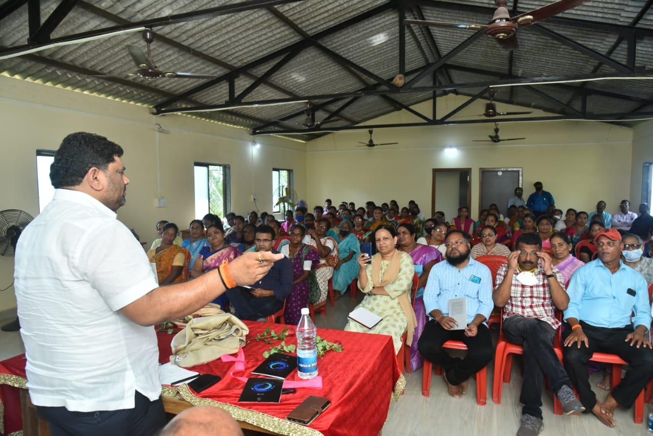मालवण दांडी आवार येथील मत्स्य व्यवसाय प्रशिक्षण केंद्र याठिकाणी विकास अध्ययन केंद्र मुंबई आणि सहाय्यक आयुक्त मत्स्य व्यवसाय कार्यालय यांच्या संयुक्त विद्यमाने मच्छीमार महिलांसाठी मार्गदर्शनपर कार्यक्रमाचे आयोजन आज करण्यात आले होते. यावेळी विकास अध्ययन केंद्र मुंबई प्रकाशित ‘प्रधानमंत्री मत्स्य संपदा योजना’ पुस्तिकेचे प्रकाशन आ. वैभव नाईक यांच्या प्रमुख उपस्थितीत करण्यात आले. यावेळी सहाय्यक आयुक्त मत्स्य व्यवसाय रवींद्र मालवणकर, विकास अध्ययन केंद्राचे सुरेश शेळके, रेणुका कड, सिंधुदुर्ग जिल्हा गाबित महासंघाचे संघटक चंद्रशेखर उपरकर, सिंधुदुर्ग जिल्हा श्नमजिवी रापण संघाचे सचिव दिलीप घारे, जि. प. सदस्य हरी खोबरेकर, नगरसेविका सेजल परब, कांदळवन विभागाच्या जैव विविधता तज्ज्ञ दुर्गा सावंत-ठिगळे, मालवण तालुका श्रमिक मच्छीमार संघाचे अध्यक्ष छोटु सावजी, उपाध्यक्ष बाबी जोगी, एनएफएफ कार्यकारिणी सदस्य रवीकिरण तोरसकर, अखिल महाराष्ट्र मच्छीमार कृती समिती जिल्हाध्यक्ष मिथुन मालंडकर, महिला जिल्हाध्यक्ष स्वप्नाली तारी, सागरकन्या संस्था अध्यक्ष सुलक्षणा रेवंडकर, सामाजिक कार्यकर्त्या चारुशीला देऊलकर आदी उपस्थित होते. आ.वैभव नाईक पुढे म्हणाले, आपल्या न्याय हक्कांसाठी लढत असतानाच पारंपारिक मच्छीमार आणि महिलांनी विविध शासकीय योजनांच्या माध्यमातून नव्या सकारात्मक बदलांसाठी देखील सज्ज रहायला हवे.