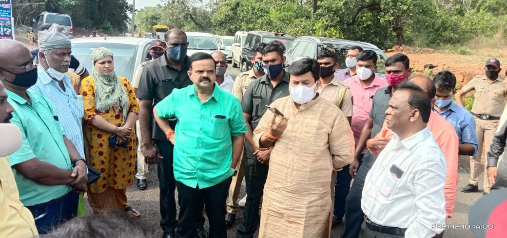 कुडाळ पिंगुळी पाट रस्त्याचे काम गेल्या विमानतळ उद्घाटन पुर्वी होणे आवश्यक असताना ते रखडलेले काम पुर्ववत सुरू व्हावे या मागणी साठी आज पालकमंत्री ना उदय सामंत चिपी विमानतळ येथुन कुडाळ येथे जाणार असल्याने आंदुर्ले खिंड येथे सर्व पक्षीय ग्रामस्थांनी भेट घेऊन रस्ता सुरु करण्यास चाल ढकलपणा आणि साबा अधिका-यांची बेजबाबदार उत्तरे याचा पाढाच पालकमंत्री ना उदय सामंत यांच्या समोर वाचला यावेळी पालकमंत्री ना सामंत यांनी ठेकेदार डाके तसेच सा बा कार्यकारी अभियंता अनामिका जाधव तसेच रत्नागिरी सा बा अधिकारी यांना ग्रामस्थांसमवेत स्पिकर वर मोबाईल ठेवुन फेस टु फेस बोलुन पालकमंत्री ना सामंत यांनी खडसावले आता कोणतेही कारण चालणार नसुन लोकांच्या जिविताशी खेळत असाल तर गाठ माझ्याशी आहे असे खडे बोल सुनावत येत्या महीन्या आत पाट पिंगुळी रस्ता पुर्ण झाला नसेल तर गाठ माझ्याशी आहे असा सज्जड दम ना सामंत यांनी दीला यावेळी माजी सभापती संजय वेंगुर्लेकर यांनी पालकमंत्री ना उदय सामंत यांचे स्वागत करत आभार मानले यावेळी शिवसेनेचे संजय पडते, अतुल बंगे, जगन्नाथ म्हापणकर, पाट माजी सरपंच सौ किर्ती ठाकुर, आंदुर्ले माजी उपसरपंच सौ आरती पाटील, राजेश सामंत, विलास आरोलकर, रत्नाकर प्रभु व ग्रामस्थ उपस्थित होते.