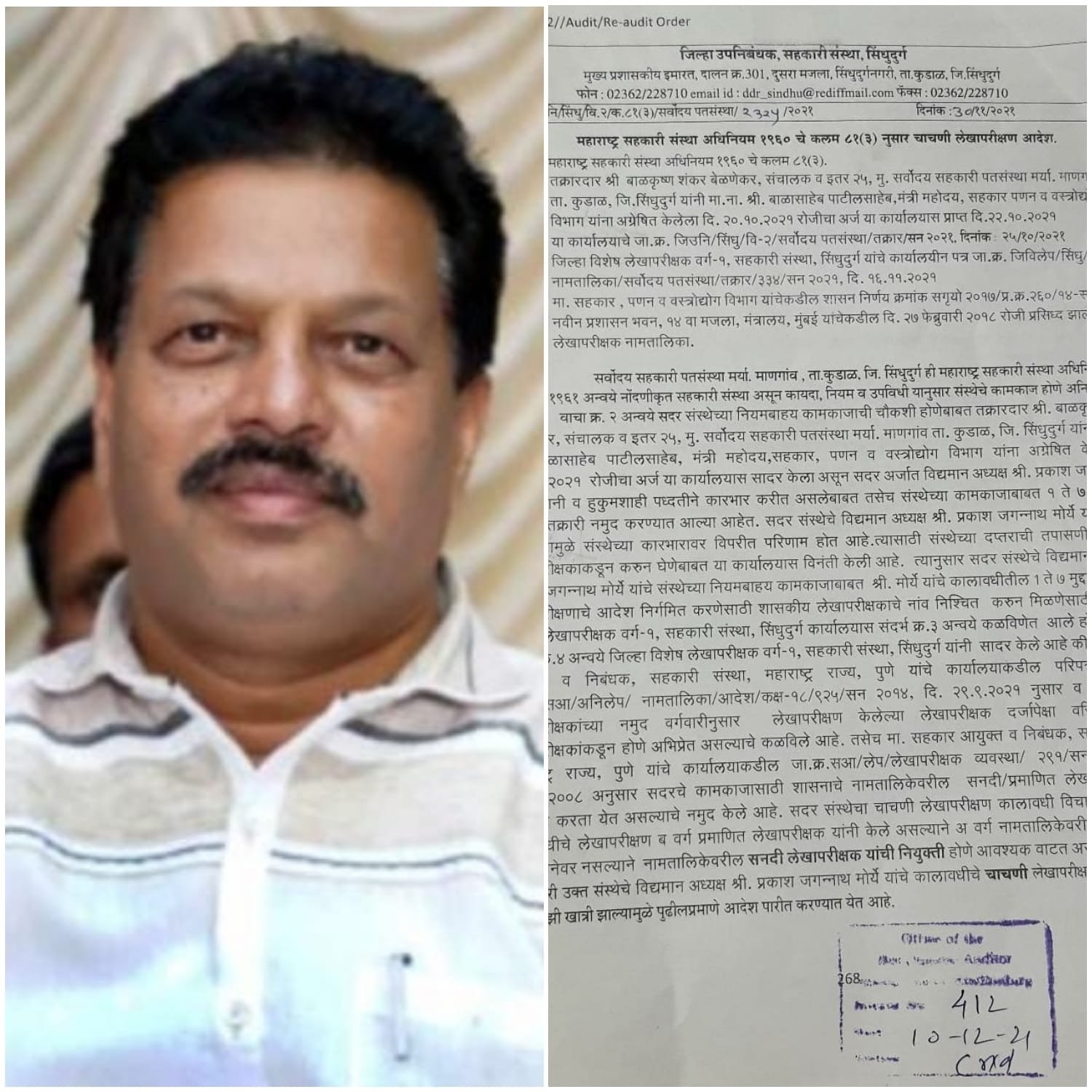 सिंधुदुर्ग जिल्हा बँकेचे उमेदवार प्रकाश मोर्ये अध्यक्ष असलेल्या सर्वोदय पतसंस्थेचे चाचणी करण्यात आली असून त्या संस्थेचे लेखापरीक्षणाचे आदेश- देण्यात आले आहेत. एकंदर श्री.दादा बेळणेकर यांच्या प्रयत्नाना यश मिळाले असे म्हणावे लागणार आहे.सर्वोदय पतसंस्थेचे लेखापरीक्षण व्हावे अशी तक्रार संस्थेचे संचालक दादा बेळणेकर यांनी मागणी केली होती.आणि ती मागणी त्यांनी चांगलीच लावून धरली होती.भाजपने श्री.प्रकाश मोर्येनी आपल्या अध्यक्ष पदाचा गैरवापर केला होता.त्यामुळे भविष्यात प्रकाश मोर्ये अध्यक्ष असलेली संस्था अडचणीत येण्याची दाट शक्यता नाकारता येत नाही अशी भीती आहे.श्री प्रकाश मोर्ये हे जिल्हा बँकच्या उमेदवार म्हणून रिंगणात आहेत आणि आपणच जिल्हा बँकेचे अध्यक्ष होणार असा प्रचार प्रकाश मोर्ये करत आहेत.सध्या ज्या प्रकाश मोर्येना साधी एक पतसंस्था सांभाळायला जमत नाही आणि ते जिल्हा बँक ची निवडणूक लढवता आहेत.एका पतसंस्थेत त्यांचे एवढे पराक्रम मग जिल्हा बँकेत काय दिवे लावले असतील याची कल्पना येते.दुसऱ्यांच्या नावाने बोंब मारण्यापेक्षा स्वतः ची माणस ज्यांना आपण उमेदवारी दिलंय त्यांचे पण पराक्रम बघा स्वतःची घर भरणारे जिल्हा बँकेचे उमेदवार प्रकाश मोर्ये आणि त्यांचे नेते दुसऱ्यांवर टीका करता आहेत.ज्यांच्या अध्यक्ष म्हणून कार्यकाळाची लेखापरीक्षण चौकशी होतेय या वरून त्यांच्या कार्याची आपल्याला कल्पना येईल.अश्या माणसांना आपण मतदान करणार का ? अश्या माणसांना जिल्हा बँकेवर संचालक म्हणून पाठवणे कितपत योग्य आहे.आपण सर्व जिल्हा बँकेचे सुज्ञ मतदार असल्या प्रवृत्तीच्या माणसांना मदत करणार का ? असा प्रश्न मतदार वर्गात निर्माण झाला आहे.