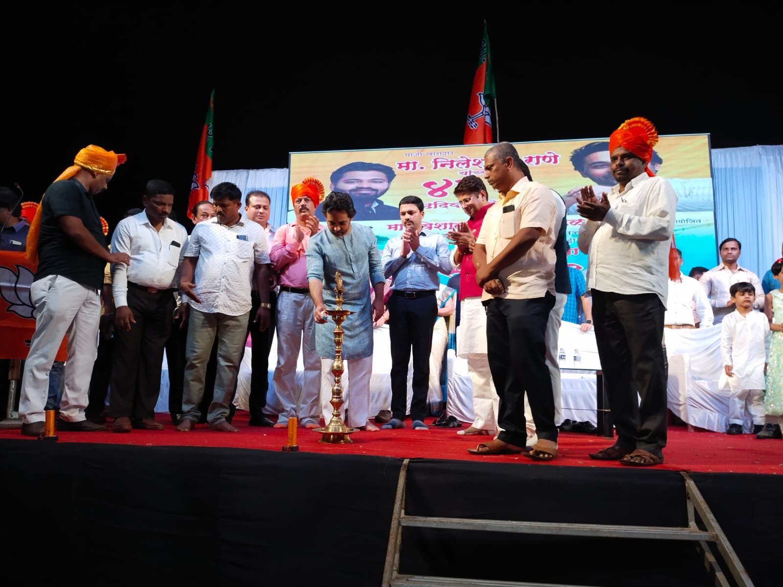 कुडाळ येथे विशाल परब मित्र मंडळ यांच्या वतीने माजी खासदार निलेश राणे यांच्या वाढदिवसानिमित्त कुडाळ येथील एस टी बस आगाराच्या मैदानावर कबड्डी स्पर्धेचे आयोजन केले होते या स्पर्धेचे उद्घाटन माजी खासदार निलेश राणे यांच्या हस्ते दीप प्रज्वलनाने झाले यावेळी भाजपचे प्रवक्ते अजित चव्हाण, उद्योजक विशाल परब, जिल्हा बँक संचालक अध्यक्ष मनीष दळवी, जिल्हा बँक संचालक प्रकाश मोर्ये, कुडाळ तालुका अध्यक्ष विनायक राणे, दादा साईल, युवा मोर्चा जिल्हाध्यक्ष भाई सावंत, ओबीसी मोर्चाचे जिल्हाध्यक्ष दीपक नारकर, समाज कल्याण सभापती व मागासवर्गीय मोर्चाचे जिल्हाध्यक्ष अंकुश जाधव, ओबीसी मोर्चा महिला जिल्हाध्यक्ष दीपलक्ष्मी पडते, जिल्हा सदस्य आनंद शिरवलकर, विवेक मांडकुलकर, शहर अध्यक्ष राकेश कांदे, नगरसेवक विलास कुडाळकर, अभी गावडे, राजीव कुडाळकर, निलेश परब, प्राजक्त बांदेकर, नयना मांजरेकर, चांदणी कांबळी तसेच इतर पदाधिकारी व कार्यकर्ते उपस्थित होते.