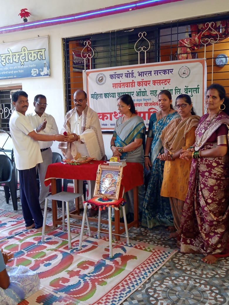 सावंतवाडी कॉयर क्लस्टरच्या चीफ एक्झिक्युटिव्ह श्रुती रेडकर, साधना करंगुटकर, मिलन साटेलकर, अनुश्री साटेलकर, रेणुका साटेलकर, साक्षी कोरगावकर,भावना मांजरेकर, अमिता पालव,काथ्या प्रशिक्षक निखार्गे आदींसह महिला बचतगट संघ महिला ,महिला वर्ग बहुसंख्येने उपस्थित होत्या.यावेळी एम.के. गावडे यांचा महिला बचत गट संघातर्फे शाल श्रीफळ देऊन सत्कार करण्यात आला. यावेळी पुढे बोलताना एम.के.गावडे म्हणाले की,साटेली पंचक्रोशीत भरपूर नारळाची लागवड आहे. सातार्डा नदीच्या पलीकडे गोवा बॉर्डर असून त्या भागातही भरपूर नारळ शेती आहे. गोव्यामध्ये सोडणावर प्रक्रिया करणारे नारळ उद्योग नाहीत. काथ्या उद्योगासाठी लागणारा कच्चामाल सहजपणे उपलब्ध होऊ शकतो. या परिसरातील महिला रोजगार – स्वयंरोजगारासाठी खूपच इच्छुक आहेत महाराष्ट्र शासन उद्योग विभागातर्फे कॉयर साठी नेहमीच सहकार्य मिळते. आत्ताच महाराष्ट्र शासनाने कॉयर पॉलिसी जाहीर केलेली आहे. सावंतवाडी तालुक्यात काथ्या उद्योग व्हावेत, यासाठी माजी राज्यमंत्री प्रविण भोसले इच्छुक आहेत. त्यांनी काही दिवसापूर्वी उद्योगमंत्री सुभाष देसाई यांची भेट घेतली होती. सावंतवाडी कॉयर क्लस्टर मार्फत येथील महिलांना काथ्याचे अद्ययावत प्रशिक्षण दिले जाणार आहे, असे यावेळी एम.के. गावडे म्हणाले.काथ्या उद्योगाच्या प्रणेत्या प्रज्ञा परब म्हणाल्या की, गेल्या अनेक वर्षात संपूर्ण जिल्ह्यात कित्येक महिलांना रोजगार उपलब्ध करून दिले आहेत. मालवणमध्ये अद्ययावत क्लस्टर सुरू झाले आहे.येथील महिलांच्या रोजगारासाठी महिला काथ्या औद्योगिक संस्था सर्वतोपरी सहकार्य करणार आहे. महिलांनी चांगल्या प्रकारे प्रशिक्षण घेऊन या उद्योग समूहात सामील व्हावे.तसेच काही महिलांना वैयक्तिक स्वरूपासाठी उद्योगासाठी सहकार्य केले जाईल.काथ्यापासून दोरी, दोरीपासून पायपुसणी व अनेक विविध प्रकारचे प्रशिक्षण देण्यात येणार असून यासाठी प्रशिक्षक म्हणून निखार्गे या काम पाहत आहेत.कार्यक्रमाचे सूत्रसंचालन व प्रास्ताविक नम्रता झारापकर यांनी व साक्षी कोरगावकर यांनी आभार मानले.
