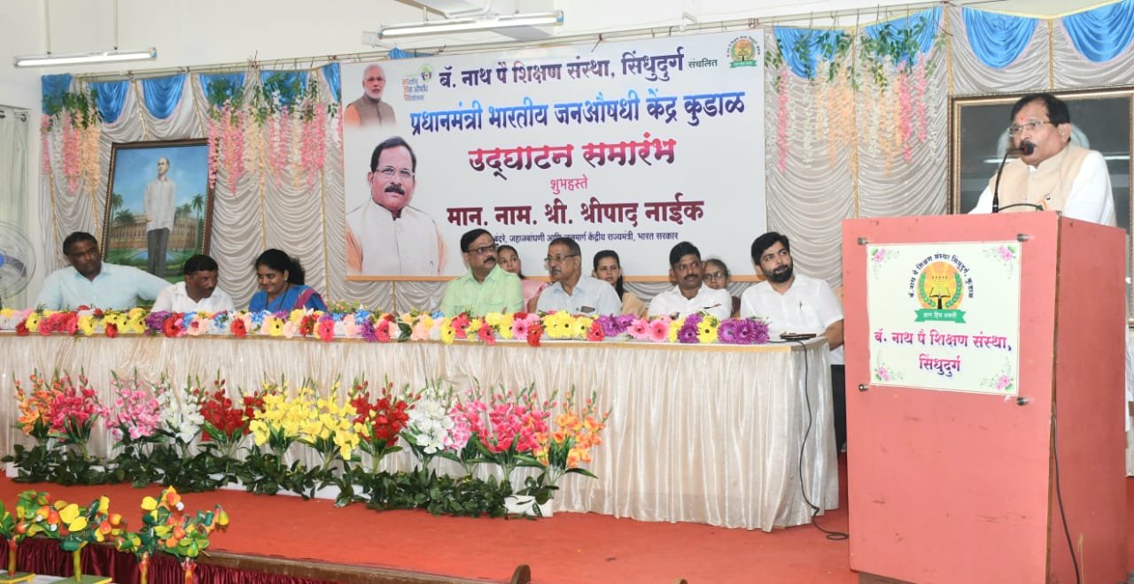 “ज्या देशातील लोकांचे आरोग्य चांगले असते तो देश वेगाने प्रगती करू शकतो .हे लक्षात घेऊन आदरणीय पंतप्रधान नरेंद्र मोदी यांच्या ‘आयुष्यमान भारत मिशन’ अंतर्गत प्रधानमंत्री भारतीय जन औषधी परियोजना मध्ये सहभाग नोंदवत बॅ.नाथ पै शिक्षण संस्थेने जनसामान्यांसाठी जे ‘जन औषधी मेडिकल’ सुरू करून समाजासमोर आदर्श घालून दिला आहे ;तो स्तुत्य आहे .”असे उद्गार केंद्रीय पर्यटन व बंदरे ,जहाजबांधणी, जलमार्ग केंद्रीय राज्यमंत्री श्रीपाद नाईक यांनी काढले. ते कुडाळ येथील बॅ.नाथ पै शिक्षण संस्थेमध्ये सुरू करण्यात आलेल्या प्रधानमंत्री भारतीय जन औषधी योजनेअंतर्गत मेडिकल स्टोअर्स च्या उद्घाटनप्रसंगी बोलत होते .त्यांनी आपल्या पुढील मनोगतामध्ये “माननीय पंतप्रधान नरेंद्र मोदी यांनी पैशाअभावी देशातील कुणाचा मृत्यू होऊ नये .त्यांना वेळेवर स्वस्त व माफक दरात औषधे मिळावीत ,त्यांना उपचारासाठीचा खर्च मिळावा यासाठी “आयुष्यमान भारत मिशन “सुरू केलं. व गरिबांना वाजवी किमतीमध्ये औषधे मिळावी यासाठी प्रधानमंत्री भारतीय जन औषधी परियोजना सुरू केली आहे. त्याला प्रतिसाद देऊन कोरोनाच्या काळात समाजासाठी उत्तम काम केलेल्या कुडाळ येथील बॅरिस्टर नाथ पै शिक्षण संस्थेने जन औषधी योजनेअंतर्गत स्वस्त दरात वस्तू उपलब्ध करणारं जन औषधी मेडिकल स्टोअर्स सुरू करून अनेकांसमोर एक उत्तम आदर्श ठेवलेला आहे . हे त्यांचे कार्य कौतुकास्पद आहे .या उपक्रमात त्यांनी व त्यांचे प्राध्यापक यांच्या सहकार्याने नर्सेस स्टुडंट्सनी जे काम केले तेही फार महत्त्वाचे आहे.मोलाचे आहे. नर्सेस स्टुडंट्सनी हे काम अतिशय उत्तमरित्या पार पाडण्यासाठी उत्तम प्रशिक्षण घ्यावे, आर्थिक उन्नती बरोबर लोकांनाआरोग्य विषयक सेवा देऊन समाजऋण फेडावे. असे सांगत खेड्यापाड्यातील लोकांचे आरोग्य चांगलं राहावं यासाठी केंद्र सरकारने आयुष्यमान भारत मिशन अंतर्गत ज्या अनेक सवलतींची, मदतीची तरतूद केलेली आहे; त्याचा उपस्थितांचा परिचय करून देऊन त्याचा योग्य लाभ घ्यावा असे आवाहनही केले. उपस्थित मान्यवरांच्या हस्ते दीप प्रज्ज्वलन करून कार्यक्रमाची सुरुवात करण्यात आलेल्या कार्यक्रमाचे प्रास्ताविक उमेश गाळवणकर यांनी केले तर सूत्रसंचालन प्रा. प्रणाली मयेकर यांनी केले. यावेळी व्यासपीठावर बॅरिस्टर नाथ पै शिक्षण संस्थेचे चेअरमन उमेश गाळवणकर, अतुल काळसेकर कुडाळ नगरपंचायतीच्या नगरसेविका संध्या तेरसे,राजू राऊळ, बंड्या सावंत निलेश तेंडुलकर, नर्सिंग महाविद्यालयाच्या प्राचार्य मीना जोशी, उपप्राचार्या कल्पना भंडारी, फिजिओथेरपी महाविद्यालयाचे प्राचार्य डॉ.सुरज शुक्ला ,महिला व रात्र महाविद्यालयाचे प्राचार्य अरुण मर्गज इत्यादी उपस