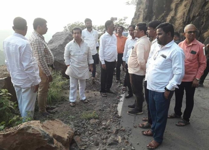 आमदार नितेश राणे यांनी भुईबावडा घाटाची पाहणी केली. दरडीचा मोठा भाग कोसळल्या ठिकाणी आमदार नितेश राणे यांनी पाहणी केली. तसेच घाटात शंभर मीटर अंतरावर भेग गेली आहे. त्या ठिकाणी पाहणी करत अधिकाऱ्यांना सूचना केल्या.