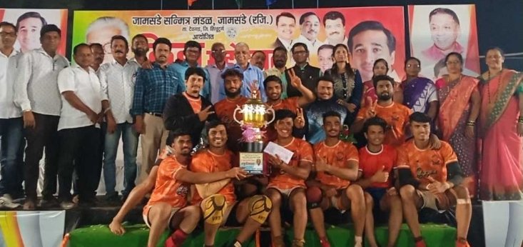 जामसंडे येथील जामसंडे सन्मित्र मंडळ आयोजित माजी आमदार कै. आप्पासाहेब गोगटे स्मृतीचषक २०२३ राज्यस्तरीय कबड्डी स्पर्धेत जय हनुमान ठाणे विजेता, नवभारत शिरोळ उपविजेता ठरला जिल्हास्तरीय कबड्डी पुरुष गट श्री भवानी सावंतवाडी विजेता सिंधुपुत्र कोळोशी उपविजेता,व महिला कबड्डी गटात एस.एम.सिंधु कुडाळ विजेते हॉलिक्रॉस सावंतवाडी उपविजेते ठरले राज्यस्तरीय कबड्डी विजेत्या संघांना प्रथम क्रमांक रोख रु ३५ हजार,व आकर्षक चषक,द्वितीय रोख रु २५ हजार व आकर्षक चषक देऊन गौरविण्यात आले.तर जिल्हास्तरीत कबड्डी विजेत्यांना महिला व पुरुष गटातील विजेत्या प्रथम क्रमांक रोख रु १० हजार व आकर्षक चषक द्वितीय क्रमांक रोख रु ७ हजार व आकर्षक चषक