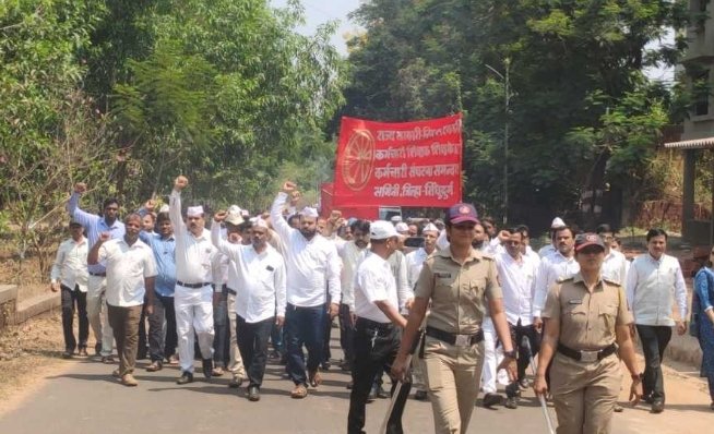 जुनी पेन्शन योजना लागू करा या प्रमुख मागणीसह जिल्ह्यातील विविध ५६ केडरचे कर्मचारी आजपासून बेमुदत संपावर गेले आहेत. जिल्ह्यातील सुमारे १७ हजार कर्मचारी या संपात सहभागी झाले आहेत. पहिल्याच दिवशी कर्मचाऱ्यांनी जिल्हाधिकारी कार्यालयावर भव्य मोर्चा काढला. या मोर्चात हजारोंच्या संख्येने कर्मचारी सहभागी झाले होते. ओरोस रवळनाथ मंदिर येथून निघालेल्या या मोर्चातील सहभागी कर्मचाऱ्यांनी सिंधुदुर्गनगरी परिसर घोषणांनी दणाणून सोडला. जुनी पेन्शन मिळालीच पाहिजे. जुनी पेन्शन आमच्या हक्काची असून ती मिळेपर्यंत माघार घेणार नसल्याचा निर्धार यावेळी व्यक्त करण्यात आला. यानंतर अपर जिल्हाधिकारी शंकर बर्गे यांना मुख्यमंत्री एकनाथ शिंदे यांच्यासाठी निवेदन देण्यात आले. कर्मचारी संघटनेचे समन्वयक राजन कोरगावकर, सरचिटणीस सत्यवान माळवे यांच्यासह सुमारे अडीज ते तीन हजार कर्मचारी सहभागी झाले होते.
