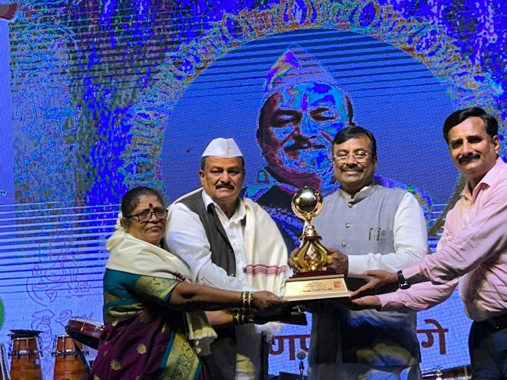 सांस्कृतिक मंत्री सुधीर मुनगंटीवार यांच्या हस्ते श्री.मसगे यांनी सपत्नीक स्वीकारला पुरस्कार..
