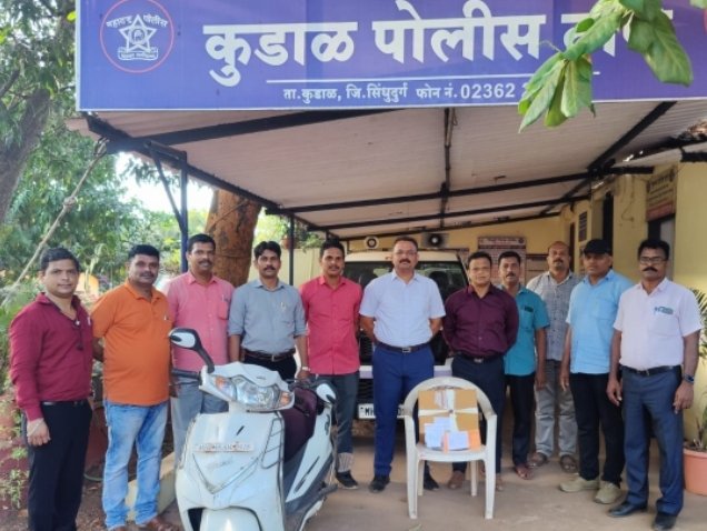 कुडाळ शहरात आज सायकाळी ५ च्या सुमारास अनंत मुक्ताई हॉटेल समोर सार्वजनिक सुलभ शौचालय या ठिकाणी एक इसम दुचाकीवरून येऊन गांजा विक्री करणार आहे.अशी गोपनीय माहिती स्थानिक गुन्हे अन्वेषण शाखेच्या पथकास मिळाली त्यावरून सापळा रचून एका आरोपी विरुद्ध कारवाई करून त्याचे दुचाकीचे सीट खालील डिकीत एकूण २ किलो १०३ ग्रॅम गांजा पकडला आहे. ६३,९० रुपये चा गांजा आणि ४०,हजार- किमतीची हिरो duet दुचाकी ८,हजारकिमतीचा मोबाईल हँडसेट असा एकूण रु.१११हजार ९० रुपए किमतीचा मुद्देमाल जप्त करण्यात आला.आरोपी विरूद्ध कुडाळ पोलीस ठाण्यात गुन्हा दाखल करण्यात आले असून कुडाळ पोलीस तपास करत आहेत.सदरची कारवाई सिंधुदूर्ग चे पोलीस अधीक्षक सिंधुदुर्ग सौरभ कुमार अग्रवाल यांच्या मार्गदर्शनाखाली स्थानिक गुन्हा अन्वेषण शाखेचे पोलीस निरीक्षक संदीप भोसले, सहाय्यक पोलीस निरीक्षक महेंद्र घाग, पोलीस उप निरीक्षक रामचंद्र शेळके, सहाय्यक पोलीस उपनिरीक्षक गुरुनाथ कोयंडे, पोलीस हेड कॉन्स्टेबल अनुप कुमार खंडे, कृष्णा केसरकर, प्रकाश कदम, प्रमोद काळसेकर, प्रथमेश गावडे, अमित तेली यांनी केलेली आहे