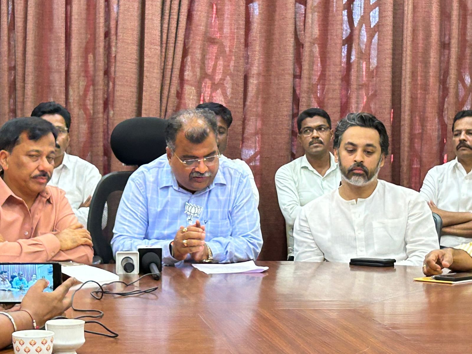 या पत्रकार परिषदेवेळी भाजप नेते निलेश राणे, भाजप जिल्हाध्यक्ष राजन तेली, प्रभाकर सावंत, संजू परब, आनंद शिरवलकर, बंड्या सावंत, किसन मांजरेकर, निलेश तेंडुलकर तसेच भाजप – शिवसेना पदाधिकारी उपस्थित होते.
