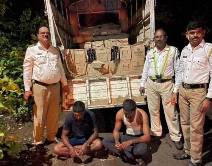 बेकायदा गोवा बनावटीची दारु वाहतूक केल्याप्रकरणी जिल्हा वाहतूक शाखेच्या पथकाने सोलापुर येथील दोघांना ताब्यात घेतले आहे. त्यांच्याकडून दारू सह ११ लाख २ हजार किमतीचा मुद्देमाल जप्त करण्यात आला आहे ही कारवाई काल रात्री उशिरा सातोळी तिठा येथे करण्यात आली. समाधान आनंद व्हनमाने वय 21 बिरुदेव उर्फ बीरुजानू खरात वय 24 हे दोघे राहणार सांगोला अशी त्यांची नावे आहेत याबाबत अधिक माहिती अशी की यातील संशयित दोघे आपल्या ताब्यातील महेंद्रा बोलेरो पिकप घेऊन सावंतवाडीहून कोल्हापूरच्या दिशेने चालले होते यावेळी त्या ठिकाणी ड्युटी बजावत असलेले वाहतूक पोलीस प्रवीण सापळे यांना त्यांची हालचाल संशयास्पद दिसली यावेळी त्यांनी या दोघांना थांबून गाडीची तपासणी केली असता गाडीत मोठ्या प्रमाणावर दारू आढळून आले याप्रकरणी त्यांना ताब्यात घेण्यात आले असून त्यांच्यावर गुन्हा दाखल करण्यात आला आहे.