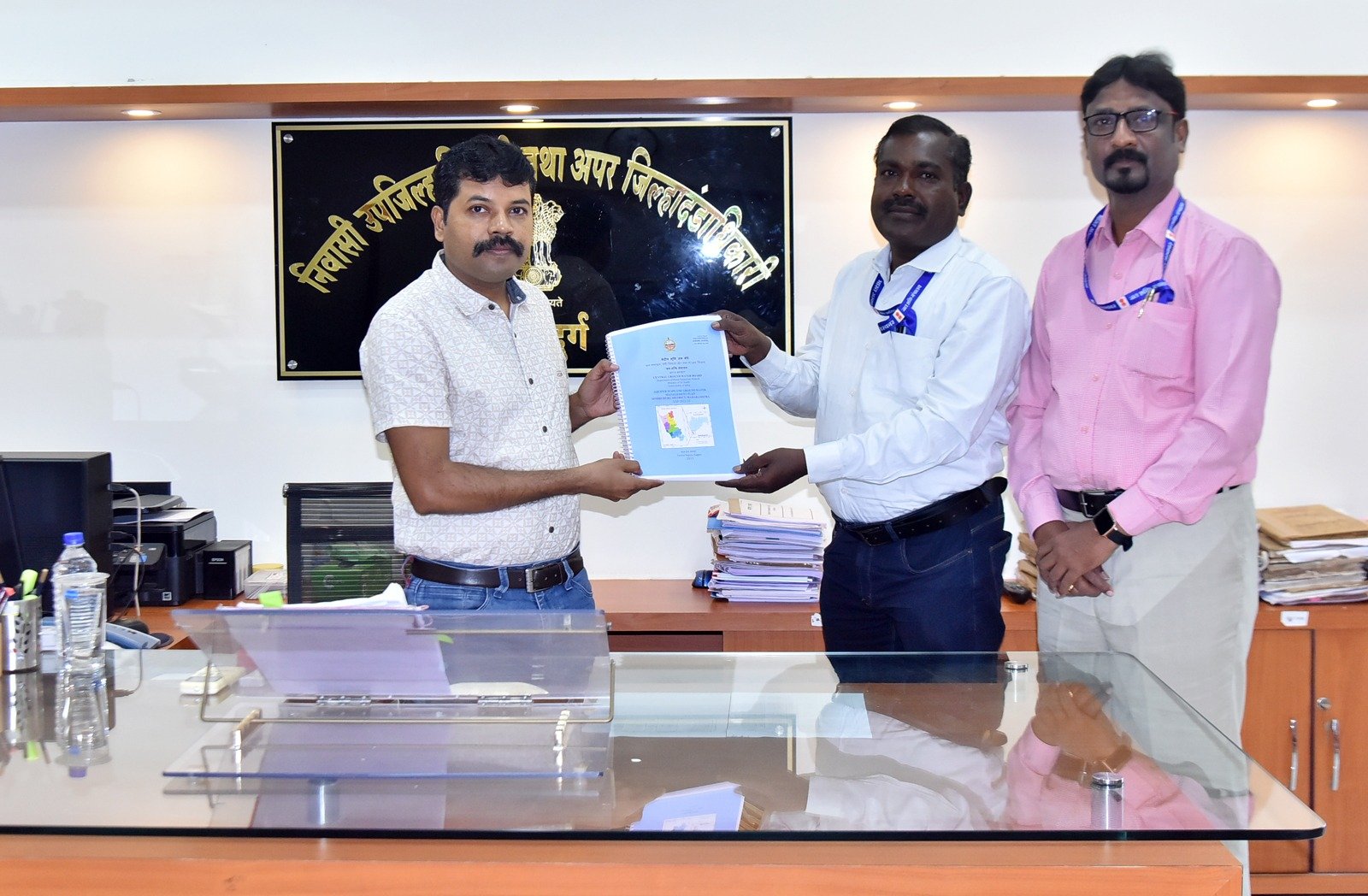 जल शक्ती मंत्रालयाच्या पुणे येथील केंद्रीय भूमी जल बोर्डाच्यावतीने शास्त्रज्ञ डॉ. जे. दावितुराज व संदीप वाघमारे यांनी जिल्ह्याचा भूजल व्यवस्थापन आराखडा निवासी उपजिल्हाधिकारी मच्छिंद्र सुकटे यांच्याकडे सादर केला.