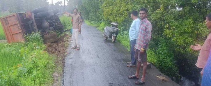 ▪️ कोणतीही जीवितहानी नाही मात्र डंपरचे मोठ्या प्रमाणात नुकसान..