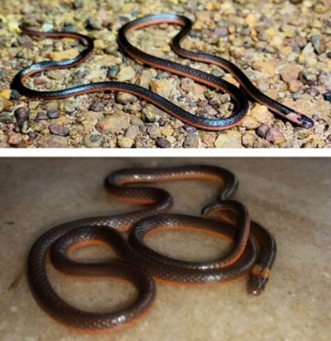 या सापाचा रंग ब्राऊन ब्लॅक असून पोटाखालून पूर्णपणे भगवा असतो. आणि त्याचा भगवा रंग हा तो जहाल विषारी असल्याचे द्योतक मानले जाते. दगडाखाली आणि पालापाचोळ्याखाली हा साप नेहमी राहतो. त्याचे भक्ष छोटे बेडूक, सरडे, पाली, गांडूळ आहे. साधारणपणे दोन ते अडीच फुटापर्यंत या सापाची लांबी असते. पूर्ण वाढलेला साप हा करंगळी एवढा जाड असतो. त्याच्या डोक्यावर भगवी जाड रेषा असते. हा साप घाबरला तर आपली शेपटी गोल करून ती जमिनीवर आपटून आपल्याजवळ येऊ नका, असा इशारा देत असतो.