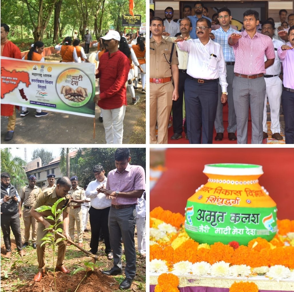 рдпрд╛ рдЕрднрд┐рдпрд╛рдирд╛рдЪреНрдпрд╛ рдЕрдиреБрд╖рдВрдЧрд╛рдиреЗ рдЖрдЬ рдирдЧрд░ рд╡рд┐рдХрд╛рд╕ рд╡рд┐рднрд╛рдЧ, рд╕рд┐рдВрдзреБрджреБрд░реНрдЧ рдорд╛рд░реНрдлрдд рдЕрдореГрдд рдХрд▓рд╢ рдпрд╛рддреНрд░реЗрдЪреЗ рдЖрдпреЛрдЬрди рдХрд░рдгреНрдпрд╛рдд рдЖрд▓реЗ рд╣реЛрддреЗ. рдЬрд┐рд▓реНрд╣реНрдпрд╛рддреАрд▓ рд╕рд╛рд╡рдВрддрд╡рд╛рдбреА, рдорд╛рд▓рд╡рдг, рд╡реЗрдВрдЧреБрд░реНрд▓рд╛, рдХрдгрдХрд╡рд▓реА, рджреЗрд╡рдЧрдб-рдЬрд╛рдорд╕рдВрдбреЗ, рдХреБрдбрд╛рд│, рдХрд╕рдИ-рджреЛрдбрд╛рдорд╛рд░реНрдЧ рд╡ рд╡рд╛рднрд╡реЗ-рд╡реИрднрд╡рд╡рд╛рдбреА рдпрд╛ рдЖрдард╣реА рдирд╛рдЧрд░реА рднрд╛рдЧрд╛рддреАрд▓ рдорд╛рддреАрдиреЗ рднрд░рд▓реЗрд▓реНрдпрд╛ рдЕрдореГрдд рдХрд▓рд╢рд╛рдВрдЪреА рд╕рд┐рдВрдзреБрджреБрд░реНрдЧ рдирдЧрд░реА рдпреЗрдереЗ рдвреЛрд▓рддрд╛рд╢рд╛рдВрдЪреНрдпрд╛ рдЧрдЬрд░рд╛рдд рдЙрддреНрд╕рд╡реА рд╡рд╛рддрд╛рд╡рд░рдгрд╛рдд рдЕрдореГрдд рдХрд▓рд╢ рдпрд╛рддреНрд░рд╛ рд╕рдВрдкрдиреНрди рдЭрд╛рд▓реА. рд╕рд░реНрд╡ рд╢рд╣рд░рд╛рдВрдЪреНрдпрд╛ рдЕрдореГрдд рдХрд▓рд╢рд╛рдВрдЪреЗ рдЬрд┐рд▓реНрд╣рд╛рдзрд┐рдХрд╛рд░реА рдХрд╛рд░реНрдпрд╛рд▓рдп рдпреЗрдереЗ рдЖрдЧрдорди рдЭрд╛рд▓реНрдпрд╛рдирдВрддрд░ рдЬрд┐рд▓реНрд╣рд╛рдзрд┐рдХрд╛рд░реА рдХрд┐рд╢реЛрд░ рддрд╛рд╡рдбреЗ рдпрд╛рдВрдЪреНрдпрд╛ рдЙрдкрд╕реНрдерд┐рддреАрдд рд╕рд░реНрд╡ рдХрд▓рд╢рд╛рдВрддреАрд▓ рдорд╛рддреА рдЬрд┐рд▓реНрд╣рд╛рд╕реНрддрд░реАрдп рдХрд▓рд╢рд╛рдд рдПрдХрддреНрд░рд┐рдд рдХрд░рдгреНрдпрд╛рдд рдЖрд▓реА. рдпрд╛рд╡реЗрд│реА рдЬрд┐рд▓реНрд╣рд╛ рдкреЛрд▓рд┐рд╕ рдЕрдзреАрдХреНрд╖рдХ рд╕реМрд░рднрдХреБрдорд╛рд░ рдЕрдЧреНрд░рд╡рд╛рд▓, рдЬрд┐рд▓реНрд╣рд╛рдкрд░рд┐рд╖рдж рдореБрдЦреНрдпрдХрд╛рд░реНрдпрдХрд╛рд░реА рдЕрдзрд┐рдХрд╛рд░реА рдкреНрд░рдЬреАрдд рдирд╛рдпрд░, рдЕрдкрд░ рдЬрд┐рд▓реНрд╣рд╛рдзрд┐рдХрд╛рд░реА рд░рд╡рд┐ рдкрд╛рдЯреАрд▓, рдирд┐рд╡рд╛рд╕реА рдЙрдкрдЬрд┐рд▓реНрд╣рд╛рдзрд┐рдХрд╛рд░реА рд╢реНрд░реА рдордЪреНрдЫрд┐рдВрджреНрд░ рд╕реБрдХрдЯреЗ, рдкрд░рд┐рд╡реАрдХреНрд╖рд╛рдзреАрди рд╕рд╣рд╛рдпреНрдпрдХ рдЬрд┐рд▓реНрд╣рд╛рдзрд┐рдХрд╛рд░реА рд╡рд┐рд╢рд╛рд▓ рдЦрддреНрд░реА, рдЬрд┐рд▓реНрд╣рд╛ рд╕рд╣-рдЖрдпреБрдХреНрдд рд╢реНрд░реА рдЕрдЬрдпрдХреБрдорд╛рд░ рдПрдбрдХреЗ, рдорд╛рд▓рд╡рдг рдирдЧрд░рдкрд░рд┐рд╖рдж рдкреНрд░рд╢рд╛рд╕рдХ рддрдерд╛ рдореБрдЦреНрдпрд╛рдзрд┐рдХрд╛рд░реА рд╕рдВрддреЛрд╖ рдЬрд┐рд░рдЧреЗ, рд╕рд╛рд╡рдВрддрд╡рд╛рдбреА рдирдЧрд░рдкрд░рд┐рд╖рдж рдореБрдЦреНрдпрд╛рдзрд┐рдХрд╛рд░реА рд╕рд╛рдЧрд░ рд╕рд╛рд│реБрдВрдЦреЗ, рд╡реЗрдВрдЧреБрд░реНрд▓рд╛ рдирдЧрд░рдкрд░рд┐рд╖рдж рдореБрдЦреНрдпрд╛рдзрд┐рдХрд╛рд░реА рдкрд░рд┐рддреЛрд╖ рдХрдВрдХрд╛рд│, рдХреБрдбрд╛рд│ рдирдЧрд░рдкрдВрдЪрд╛рдпрдд рдореБрдЦреНрдпрд╛рдзрд┐рдХрд╛рд░реА рдЕрд░рд╡рд┐рдВрдж рдирд╛рддреВ, рджреЗрд╡рдЧрдб-рдЬрд╛рдорд╕рдВрдбреЗ рдореБрдЦреНрдпрд╛рдзрд┐рдХрд╛рд░реА рд╕реВрд░рдЬ рдХрд╛рдВрдмрд│реЗ, рдПрдирд╕реАрд╕реА рдЪреЗ рд▓реЗрдлреНрдЯрдирдВрдЯ рдкреНрд░рд╛. рдбреЙ. рдПрдо. рдЖрд░. рдЦреЛрдд. рд╕рд░реНрд╡ рдирдЧрд░рдкрд╛рд▓рд┐рдХрд╛рдВрдЪреЗ рдХрд░реНрдордЪрд╛рд░реА рдЙрдкрд╕реНрдерд┐рдд рд╣реЛрддреЗ.рдпрд╛