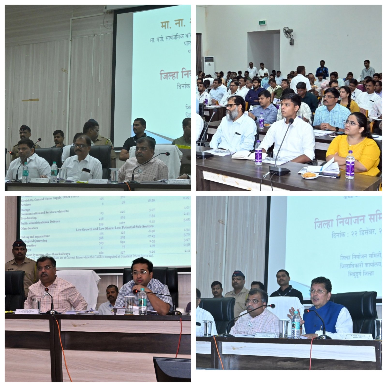 рдкрд╛рд▓рдХрдордВрддреНрд░реА рд░рд╡рд┐рдВрджреНрд░ рдЪрд╡реНрд╣рд╛рдг рдпрд╛рдВрдЪреНрдпрд╛ рдЕрдзреНрдпрдХреНрд╖рддреЗрдЦрд╛рд▓реА рд╕рд┐рдВрдзреБрджреБрд░реНрдЧ рдЬрд┐рд▓реНрд╣рд╛ рдирд┐рдпреЛрдЬрди рд╕рдорд┐рддреАрдЪреА рд╕рднрд╛ рдЬрд┐рд▓реНрд╣рд╛ рдирд┐рдпреЛрдЬрди рд╕рдорд┐рддреА рд╕рднрд╛рдЧреГрд╣рд╛рдд рдкрд╛рд░ рдкрдбрд▓реА. рдпрд╛рд╡реЗрд│реА рд╢рд╛рд▓реЗрдп рд╢рд┐рдХреНрд╖рдг рдордВрддреНрд░реА рджрд┐рдкрдХ рдХреЗрд╕рд░рдХрд░, рдЖрдорджрд╛рд░ рд╡реИрднрд╡ рдирд╛рдИрдХ, рдЖрдорджрд╛рд░ рдирд┐рддреЗрд╢ рд░рд╛рдгреЗ, рдЬрд┐рд▓реНрд╣рд╛рдзрд┐рдХрд╛рд░реА рдХрд┐рд╢реЛрд░ рддрд╛рд╡рдбреЗ, рдореБрдЦреНрдп рдХрд╛рд░реНрдпрдХрд╛рд░реА рдЕрдзрд┐рдХрд╛рд░реА рдкреНрд░рдЬрд┐рдд рдирд╛рдпрд░, рдкреЗрд╛рд▓рд┐рд╕ рдЕрдзреАрдХреНрд╖рдХ рд╕реМрд░рдн рдЕрдЧреНрд░рд╡рд╛рд▓, рдЬрд┐рд▓реНрд╣рд╛ рдирд┐рдпреЛрдЬрди рдЕрдзрд┐рдХрд╛рд░реА рднрдЧрд╡рд╛рди рдкрд╡рд╛рд░ рддрд╕реЗрдЪ рд╕рдВрдмрдВрдзрд┐рдд рд╡рд┐рднрд╛рдЧрд╛рдВрдЪреЗ рд╡рд┐рднрд╛рдЧ рдкреНрд░рдореБрдЦ рдЙрдкрд╕реНрдерд┐рдд рд╣реЛрддреЗ. рдмреИрдардХреАрдЪреНрдпрд╛ рд╕реБрд░реБрд╡рд╛рддреАрд▓рд╛ рдЬрд┐рд▓реНрд╣рд╛ рдирд┐рдпреЗрд╛рдЬрди рдЕрдзрд┐рдХрд╛рд░реА рд╢реНрд░реА рдкрд╡рд╛рд░ рдпрд╛рдВрдиреА рд╕рд╛рджрд░реАрдХрд░рдгрд╛рд╡реНрджрд╛рд░реЗ рдЦрд░реНрдЪрд╛рдЪреА рдорд╛рд╣рд┐рддреА рджрд┐рд▓реА.