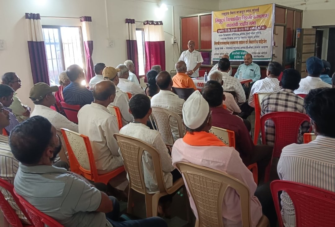рдпрд╛ рдмреИрдардХреАрдд рдХрд╛рдордЧрд╛рд░рд╛рдВрдирд╛ рдорд╛рд░реНрдЧрджрд░реНрд╢рди рдХрд░рддрд╛рдирд╛ рдЪрд╡реНрд╣рд╛рдг рдпрд╛рдВрдиреА рдЧрд┐рд░рдгреА рдХрд╛рдордЧрд╛рд░рд╛рдВрдЪреНрдпрд╛ рдЖрдВрджреЛрд▓рдирд╛рдЪрд╛ рдЗрддрд┐рд╣рд╛рд╕ рд╕рд╛рдВрдЧрдд рдорд┐рд▓ рдордЬрджреВрд░ рд╕рдВрдШрд╛рдиреЗ рдЖрддрд╛рдкрд░реНрдпрдВрдд рд╕реБрдорд╛рд░реЗ резрео рд╣рдЬрд╛рд░ рдХрд╛рдордЧрд╛рд░рд╛рдВрдирд╛ рдШрд░реЗ рдорд┐рд│рд╡реВрди рджрд┐рд▓реНрдпрд╛рдЪреА рдорд╛рд╣рд┐рддреА рджрд┐рд▓реА.рд╕реБрдорд╛рд░реЗ рдПрдХ рд▓рд╛рдЦ релрез рд╣рдЬрд╛рд░ рдХрд╛рдордЧрд╛рд░ рдШрд░рд╛рдВрд╕рд╛рдареА рдкрд╛рддреНрд░ рдЕрд╕реВрди рдпрд╛ рд╕рд░реНрд╡рд╛рдБрдирд╛ рд▓рд╡рдХрд░рд╛рдд рд▓рд╡рдХрд░ рдШрд░реЗ рдорд┐рд│рд╡реВрди рджреЗрдгреНрдпрд╛рдЪрд╛ рд╕рдВрдШрд╛рдЪрд╛ рдирд┐рд░реНрдзрд╛рд░ рдЖрд╣реЗ.резрепреореи рдЪреНрдпрд╛ рдЧрд┐рд░рдгреА рд╕рдВрдкрд╛рдирдВрддрд░рдЪреНрдпрд╛ рдХрд╛рдордЧрд╛рд░рд╛рдВрдирд╛ рдШрд░рд╛рдВрд╕рд╛рдареА рдкрд╛рддреНрд░ рдард░рд╡рд┐рдгреНрдпрд╛рдд рдЖрд▓реЗ рдЕрд╕рд▓реЗ рддрд░реА рдЬреНрдпрд╛ рдЖрда рдЧрд┐рд░рдгреНрдпрд╛ рдЖрдзреАрдЪ рдмрдВрдж рдкрдбрд▓реНрдпрд╛ рд╣реЛрддреНрдпрд╛ рддреНрдпрд╛рддреАрд▓ рдХрд╛рдордЧрд╛рд░рд╛рдВрдирд╛рд╣реА рдШрд░реЗ рджреНрдпрд╛рд╡реАрдд рдЕрд╢реА рдорд╛рдЧрдгреА рд╕рдВрдШрд╛рдиреЗ рд╕рд░рдХрд╛рд░рдХрдбреЗ рд▓рд╛рд╡реВрди рдзрд░рд▓реА рдЖрд╣реЗ рдЕрд╢реА рдорд╛рд╣рд┐рддреАрд╣реА рдЪрд╡реНрд╣рд╛рдг рдпрд╛рдВрдиреА рдпрд╛рд╡реЗрд│реА рджрд┐рд▓реА.