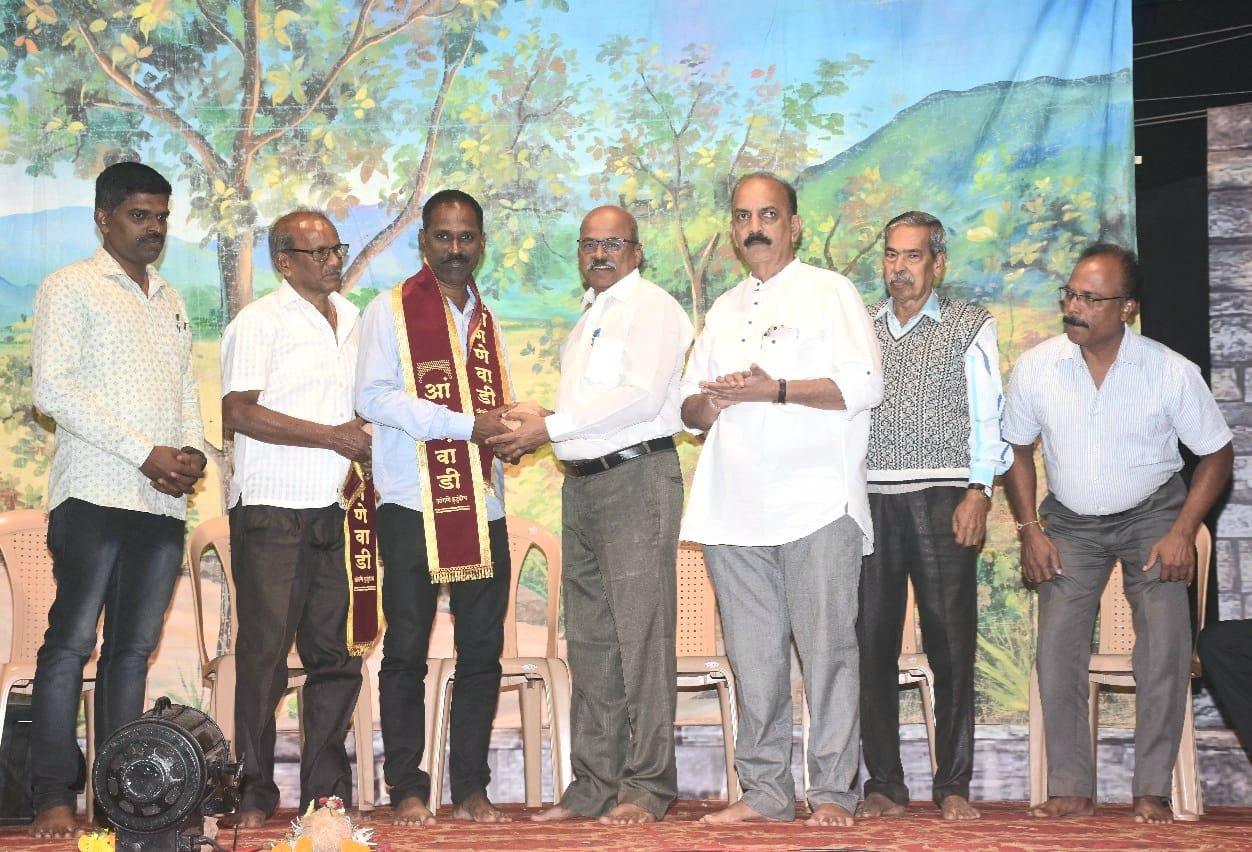 рдЖрдВрдЧрдгреЗрд╡рд╛рдбреА рдпреЗрдереЗ рд╢реНрд░реАрджреЗрд╡реА рднрд░рд╛рдбреА рдорд╛рддрд╛ рд░рдВрдЧрдордВрдЪрд╛рд╡рд░рддреА рдкрддреНрд░рдХрд╛рд░ рджрддреНрддрдкреНрд░рд╕рд╛рдж рдкреЗрдбрдгреЗрдХрд░ рдпрд╛рдВрдирд╛ рдЖрджрд░реНрд╢ рдЬрд┐рд▓реНрд╣рд╛ рдЧреНрд░рд╛рдореАрдг рдкрддреНрд░рдХрд╛рд░ рдкреБрд░рд╕реНрдХрд╛рд░ рддрд╕реЗрдЪ рдкрддреНрд░рдХрд╛рд░рд┐рддреЗрддреАрд▓ рдЖрдЬрд╡рд░рдЪреНрдпрд╛ рд╕реЗрд╡реЗрдЪрд╛ рдЧреМрд░рд╡ рдореНрд╣рдгреВрди рдЖрдВрдЧрдгреЗрд╡рд╛рдбреА рдирд╛рдЯреНрдп рдордВрдбрд│рд╛рдЪреЗ рдЬреНрдпреЗрд╖реНрда рдирд╛рдЯреНрдп рдХрд▓рд╛рдХрд╛рд░ рдЕрд░реНрдЬреБрди рдЙрд░реНрдл рдХрд╛рдХрд╛ рдЖрдВрдЧрдгреЗ рдпрд╛рдВрдЪреНрдпрд╛ рд╣рд╕реНрддреЗ рд╢рд╛рд▓ рд╢реНрд░реАрдлрд│ рдкреБрд╖реНрдкрдЧреБрдЪреНрдЫ рджреЗрдКрди рд╡рд┐рд╡рд┐рдз рдорд╛рдиреНрдпрд╡рд░рд╛рдВрдЪреНрдпрд╛ рдЙрдкрд╕реНрдерд┐рддреАрдд рдЧреМрд░рд╡рд┐рдгреНрдпрд╛рдд рдЖрд▓реЗ. рдпрд╛рд╡реЗрд│реА рднрд╛рд╕реНрдХрд░ рдЖрдВрдЧрдгреЗ, рдЫреЛрдЯреВ рдЖрдВрдЧрдгреЗ, рдЖрдВрдЧрдгреЗрд╡рд╛рдбреА рдордВрдбрд│рд╛рдЪреЗ рдХрд╛рд░реНрдпрд╡рд╛рд╣рдХ рдмрд╛рд│рд╛ рдЖрдВрдЧрдгреЗ, рдЧрдЬрд╛рдирди рдЖрдВрдЧрдгреЗ, рдмрд╛рдмреВ рдЖрдВрдЧрдгреЗ, рдЖрддреНрдорд╛рд░рд╛рдо рдЖрдВрдЧрдгреЗ, рд╕реБрд╢реАрд▓ рдЖрдВрдЧрдгреЗ,рд╢рд╢рд┐рдХрд╛рдВрдд рдХрд╛рдВрдмрд│реА, рдЭреБрдВрдЬрд╛рд░ рдкреЗрдбрдгреЗрдХрд░,рдЕрдирдВрдд рдЖрдВрдЧрдгреЗ, рдмрд╛рдмреНрдпрд╛ рдЖрдВрдЧрдгреЗ,рдордзреБрдХрд░ рдЖрдВрдЧрдгреЗ,рд╕рдВрдХреЗрдд рдЖрдВрдЧрдгреЗ, рдЖрдмрд╛ рдЖрдВрдЧрдгреЗ,рд╕рдореАрд░ рдЖрдВрдЧрдгреЗ, рд╕рдЪрд┐рди рдЖрдВрдЧрдгреЗ, рд╕рдВрддреЛрд╖ рдЖрдВрдЧрдгреЗ, рджреАрдкрдХ рдЖрдВрдЧрдгреЗ,рдирдВрджреВ рдЖрдВрдЧрдгреЗ, рд╕реБрдзрд╛ рдЖрдВрдЧрдгреЗ,рд╡рд┐рджреНрдпрд╛ рдЖрдВрдЧрдгреЗ,рдкреНрд░рд╕рд╛рдж рдЖрдВрдЧрдгреЗ,рд░рдШреБрдирд╛рде рдЖрдВрдЧрдгреЗ,рд╢рд╢реА рдЖрдВрдЧрдгреЗ,рджрд┐рдиреЗрд╢ рдЖрдВрдЧрдгреЗ,рд╕рддреАрд╢ рдЖрдВрдЧрдгреЗ, рддрдиреБрд░рд╛рдЬ рдЖрдВрдЧрдгреЗ, рд░рд╛рдЬрди рдЖрдВрдЧрдгреЗ, рд╕реАрддрд╛рд░рд╛рдо рдЖрдВрдЧрдгреЗ, рдЖрдирдВрдж рдЖрдВрдЧрдгреЗ,рднрд░рдд рдЖрдВрдЧрдгреЗ,рд░рд╛рдорджрд╛рд╕ рдЖрдВрдЧрдгреЗ,рд╡рд┐рдЬрдп рдЖрдВрдЧрдгреЗ,рдЧрдгреЗрд╢ рдЖрдВрдЧрдгреЗ,рдкрдВрдХрдЬ рдЖрдВрдЧрдгреЗ рдЖрдгрд┐ рдЖрдВрдЧрдгреЗ рдЧреНрд░рд╛рдорд╕реНрде рдЙрдкрд╕реНрдерд┐рдд рд╣реЛрддреЗ. рдпрд╛ рд╡реЗрд│реА рдкрддреНрд░рдХрд╛рд░ рдЭреБрдВрдЬрд╛рд░ рдкреЗрдбрдгреЗрдХрд░ рдпрд╛рдирд╛ рддрд╛рд▓реБрдХрд╛ рдкрддреНрд░рдХрд╛рд░ рд╕рдорд┐рддреАрдЪрд╛ рдЖрджрд░реНрд╢ рдкрддреНрд░рдХрд╛рд░ рдкреБрд░рд╕реНрдХрд╛рд░ рдкреНрд░рд╛рдкреНрдд рдЭрд╛рд▓реНрдпрд╛рдмрджреНрджрд▓ рддрд╕реЗрдЪ рдЬреНрдпреЗрд╖реНрда рд░рдВрдЧ рдХрд░рдгреЗ рд╢рд░рдж рдХрд╛рдВрдмрд│реА рдпрд╛рдВрдЪрд╛рд╣реА рд╕рддреНрдХрд╛рд░ рдХрд░рдгреНрдпрд╛рдд рдЖрд▓рд╛. рдХрд╛рд░реНрдпрдХреНрд░рдорд╛рдЪреЗ рд╕реВрддреНрд░рд╕рдВрдЪрд╛рд▓рди рдЧрдЬрд╛рдирди рдЖрдВрдЧрдгреЗ рдЖрдгрд┐ рдкреНрд░рд╛рд╕реНрддрд╛рд╡рд┐рдХ рдмрд╛рд│рд╛ рдЖрдВрдЧрдгреЗ рдпрд╛рдВрдиреА рдХреЗрд▓реЗ. рдпрд╛рд╡реЗрд│реА рдХрд╛рдХрд╛ рдЖрдВрдЧрдгреЗ,рдЫреЛрдЯреВ рдЖрдВрдЧрдгреЗ рдпрд╛рдВрдиреА рд╢реБрднреЗрдЪреНрдЫрд╛ рджрд┐рд▓р
