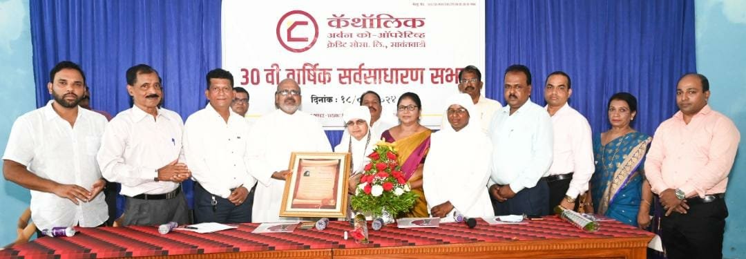 рдХреЕрдереЙрд▓рд┐рдХ рдЕрд░реНрдмрди рдХреЛ. рдСрдк. рдХреНрд░реЗрдбрд┐рдЯ рд╕реЛрд╕рд╛. рд▓рд┐. рд╕рд╛рд╡рдВрддрд╡рд╛рдбреА рдпрд╛ рд╕рдВрд╕реНрдереЗрдЪреА рейрежрд╕рд╛рд╡реА рд╡рд╛рд░реНрд╖рд┐рдХ рд╕рд░реНрд╡рд╕рд╛рдзрд╛рд░рдг рд╕рднрд╛ рд░рд╡рд┐рд╡рд╛рд░ рджрд┐.резрео рдСрдЧрд╕реНрдЯ реирежреирек рд░реЛрдЬреА рдирд╡рд╕рд░рдгреА рдХреЗрдВрджреНрд░ рд╕рд╛рд╡рдВрддрд╡рд╛рдбреА рдпреЗрдереЗ рд╕рдВрд╕реНрдереЗрдЪреНрдпрд╛ рдЕрдзреНрдпрдХреНрд╖рд╛ рд╢реНрд░реАрдо рдЖрдирдорд╛рд░реА рдЬреЙрди рдбрд┐рд╕реЛрдЬрд╛ рдпрд╛рдВрдЪреНрдпрд╛ рдЕрдзреНрдпрдХреНрд╖реЗрддреЗрдЦрд╛рд▓реА рд╕рдВрдкрдиреНрди рдЭрд╛рд▓реА рд╕рднреЗрд▓рд╛ рдкреНрд░рдореБрдЦ рдкрд╛рд╣реБрдгреЗ рдореНрд╣рдгреВрди рд╕рд╛рд╡рдВрддрд╡рд╛рдбреАрдЪреЗ рдкреЕрд░рд┐рд╢ рдкрд┐рд╕реНрдЯ рдлрд╛. рдорд┐рд▓реЗрдЯ рдбрд┐рд╕реЛрдЬрд╛ рдЙрдкрд╕реНрдерд┐рдд рд╣реЛрддреЗ.рд╕рднреЗрдЪреНрдпрд╛ рд╕реБрд░рд╡рд╛рддреАрд▓рд╛рдЪ рдкреНрд░рд╛рдердирд╛ рд╡ рджрд┐рдкрдкрдЬрд╡рд▓рди рдХрд░реВрди, рд╕рдВрд╕реНрдереЗрдЪреЗ рд╕рдВрд╕реНрдерд╛рдкрдХ рд╕рд╣рдХрд╛рд░ рд░рддреНрди рдЦрд┐. рдкрд┐.рдПрдл рдбреЙрдиреНрдЯрд╕ рддрд╕реЗрдЪ рдкрдВрдЪрддрддреНрд╡рд╛рдд рд╡рд┐рд▓реАрди рдЭрд╛рд▓реЗрд▓реНрдпрд╛рдВрдирд╛ рд╢реНрд░рдзреНрджрд╛рдВрдЬрд▓реА рдЕрд░реНрдкрдг рдХрд░рдгреНрдпрд╛рдд рдЖрд▓реА рд╡ рджрд░рд╡рд░реНрд╖рд┐рдкреНрд░рдорд╛рдгреЗ рд╕рднрд╛рд╕рджрд╛рдВрдЪреНрдпрд╛ рдкрд╛рд▓реНрдпрд╛рдВрдЪрд╛ рд╢реИрдХреНрд╖рдгрд┐рдХ рддрд╕реЗрдЪ рдХрд┐рдбрд╛ рдХреНрд╖реЗрддреНрд░рд╛рдд рд╡рд┐рд╢реЗрд╖ рдкреНрд░рд╛рд╡рд┐рдгреНрдп рд╕рдВрдкрд╛рджрд╛рди рдХреЗрд▓реНрдпрд╛ рдмрджреНрджрд▓ рд╕рддреНрдХрд╛рд░ рдХрд░рдгреНрдпрд╛рдд рдЖрд▓рд╛ рддреНрдпрд╛рдирдВрддрд░ рд╕рд╛рд╡рдВрддрд╡рд╛рдбреА рдирд┐рд░рд╡рдбреЗ рдпреЗрдереАрд▓