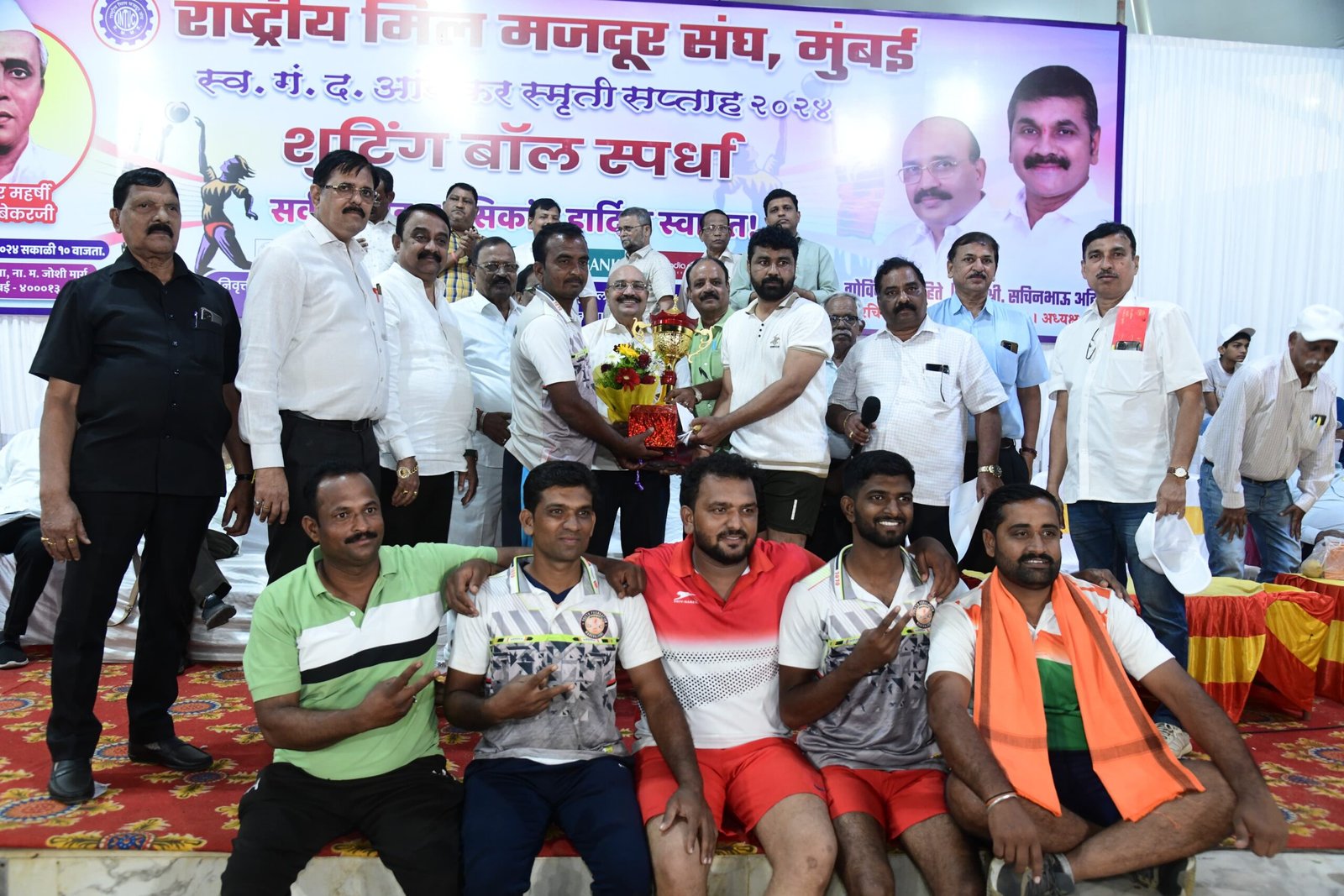 рд░рд╛рд╖реНрдЯреНрд░реАрдп рдорд┐рд▓ рдордЬрджреВрд░ рд╕рдВрдШрд╛рдЪреНрдпрд╛ рд╡рддреАрдиреЗ рд╕рдВрдШрдЯрдиреЗрдЪреЗ рд╕рдВрд╕реНрдерд╛рдкрдХ рдХрд╛рдордЧрд╛рд░ рдорд╣рд░реНрд╖реА рдЧрдВ.рдж.рдЖрдВрдмреЗрдХрд░ рдпрд╛рдВрдЪреНрдпрд╛ ремреж рд╡реНрдпрд╛ рдкреБрдгреНрдпрд╕реНрдореГрддреА рдкреНрд░рд┐рддреНрдпрд░реНрде рд╕рдВрдШрдЯрдиреЗрдЪреЗ рдЕрдзреНрдпрдХреНрд╖ рдЖрдорджрд╛рд░ рд╕рдЪрд┐рди рдЕрд╣рд┐рд░,рд╕рд░рдЪрд┐рдЯрдгреАрд╕ рдЧреЛрд╡рд┐рдВрджрд░рд╛рд╡ рдореЛрд╣рд┐рддреЗ рдпрд╛рдВрдЪреНрдпрд╛ рдкреБрдврд╛рдХрд╛рд░рд╛рдиреЗ рдирд╛.рдо.рдЬреЛрд╢реА рдорд╛рд░реНрдЧ,рд╢реНрд░рдорд┐рдХ рдЬрд┐рдордЦрд╛рдирд╛ рдореБрдВрдмрдИ рдпреЗрдереЗ рдЦреЗрд│рд╡рд┐рдгреНрдпрд╛рдд рдЖрд▓реЗрд▓реНрдпрд╛ рд╕реНрдкрд░реНрдзреЗрдд рд╕реЛрд▓рд╛рдкреВрд░ рдЬрд┐.рдпреБрде рдлреЗрдбрд░реЗрд╢рди рдордиреЗрд░рд╛рдЬреБрд░реА рд╕рдВрдШ рдЕрдЬрд┐рдВрдХреНрдп рдард░рд▓рд╛. рдХрд╛рд╡реЗрд░реА рдирдЧрд░, рдкреБрдгреЗ рд╣рд╛ рд╕рдВрдШ рдЙрдкрд╡рд┐рдЬреЗрддрд╛ рдард░рд▓рд╛. рдореБрдВрдмрдИрддреАрд▓ 14 рддрд░ рд░рд╛рдЬреНрдпрд╛рддреАрд▓ 12 рдЕрд╕реЗ 26 рд╕рдВрдШ рдпрд╛ рд╕реНрдкрд░реНрдзреЗрдд рд╕рд╣рднрд╛рдЧреА рдЭрд╛рд▓реЗ рд╣реЛрддреЗ. рд╡рд┐рдЬрдпреА рд╕рдВрдШрд╛рд▓рд╛ рдЖрдВрдмреЗрдХрд░ рдЪрд╖рдХ-резрез рд╣рдЬрд╛рд░ рд░реБрдкрдпреЗ рд░реЛрдЦ рдЖрдгрд┐ рдЙрдкрд╡рд┐рдЬрдпреА рд╕рдВрдШрд╛рд▓рд╛ рдЖрдВрдмреЗрдХрд░ рдЪрд╖рдХ-рео рд╣рдЬрд╛рд░ рд░реБрдкрдпреЗ рд░реЛрдЦ рдкрд╛рд░рд┐рддреЛрд╖рд┐рдХреЗ,рдЙрдкрд╛рдВрддреНрдп рдкрд░рд╛рднреВрдд рд╕рдВрдШрд╛рдирд╛ рдкреНрд░рддреНрдпреЗрдХреА рел рд╣рдЬрд╛рд░ рд░реЛрдЦ рд╡ рдЪрд╖рдХ рджреЗрдКрди рд╕рд░рдЪрд┐рдЯрдгреАрд╕ рдЧреЛрд╡рд┐рдВрджрд░рд╛рд╡ рдореЛрд╣рд┐рддреЗ, рдЦрдЬрд┐рдирджрд╛рд░ рдирд┐рд╡реГрддреНрддреА рджреЗрд╕рд╛рдИ, рдЙрдкрд╛рдзреНрдпрдХреНрд╖ рдХреНрд░реАрдбрд╛ рдкреНрд░рдореБрдЦ рд╕реБрдирд┐рд▓ рдмреЛрд░рдХрд░ рдпрд╛рдВрдЪреНрдпрд╛ рд╣рд╕реНрддреЗ рдкреНрд░рджрд╛рди рдХрд░рдгреНрдпрд╛рдд рдЖрд▓рд╛. рд╕рд╛рдордиреНрдпрд╛рдЪреЗ рдЙрджрдШрд╛рдЯрди рд╢реБрдЯрд┐рдВрдЧрдмреЙрд▓ рдЕрд╕реЛрд╕рд┐рдПрд╢рдирдЪреЗ рдЕрдзреНрдпрдХреНрд╖ рдорд╛рдЬреА рдЖрдорджрд╛рд░ рд╢реНрдпрд╛рдо рд╕рд╛рд╡рдВрдд, рд╕рд░рдЪрд┐рдЯрдгреАрд╕ рджреАрдкрдХ рд╕рд╛рд╡рдВрдд рдЖрдгрд┐ рдпреБрдирд┐рдпрди рдЙрдкрд╛рдзреНрдпрдХреНрд╖ рдорд╛рдЬреА рдирдЧрд░рд╕реЗрд╡рдХ рд╕реБрдирд┐рд▓ рдЕрд╣рд┐рд░ рдпрд╛рдВрдЪреНрдпрд╛ рд╣рд╕реНрддреЗ рдкрд╛рд░ рдкрдбрд▓реЗ. рдЙрдкрд╛рдзреНрдпрдХреНрд╖ рдЕрдгреНрдгрд╛ рд╢рд┐рд░реНрд╕реЗрдХрд░,рдмрдЬрд░рдВрдЧ рдЪрд╡реНрд╣рд╛рдг, рд╕реЗрдХреНрд░реЗрдЯрд░реА рд╢рд┐рд╡рд╛рдЬреА рдХрд╛рд│реЗ, рд╕рд╛рдИ рдирд┐рдХрдо, рдХрд╛рд░реНрдпрд╛рд▓рдпреАрди рдЕрдзрд┐рдХреНрд╖рдХ рдордзреБ рдШрд╛рдбреА рдЖрджреА рддреНрдпрд╛ рд╡реЗрд│реА рдЙрдкрд╕реНрдерд┐рдд рд╣реЛрддреЗ.