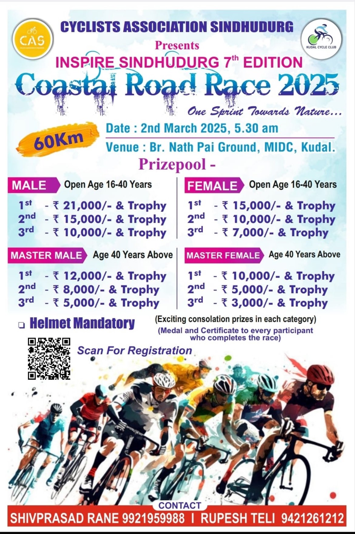 Coastal Road Race 2025 рд╣реА 60 рдХрд┐рдореА рд░реЗрд╕ рдпрд╛ рд╡рд░реНрд╖реАрдЪреЗ рдореБрдЦреНрдп рдЖрдХрд░реНрд╖рдг рдард░рдгрд╛рд░ рдЖрд╣реЗ. рдЬреНрдпрд╛рдордзреНрдпреЗ рднрд╛рд░рддрд╛рддреАрд▓ рдирд╛рд╡рд╛рдЬрд▓реЗрд▓реЗ рд╕рд╛рдпрдХрд▓рд┐рд╕реНрдЯ рднрд╛рдЧ рдШреЗрдгрд╛рд░ рдЖрд╣реЗрдд. рдЖрдкрд▓реА рд╢рд╛рд░реАрд░рд┐рдХ рдХреНрд╖рдорддрд╛ рд╡рд╛рдврд╡рдгреНрдпрд╛рд╕рд╛рдареА рд╣реА рд░реЗрд╕ рдлрд╛рдпрджреЗрд╢реАрд░ рдард░рдгрд╛рд░ рдЖрд╣реЗ. рд╕реИрдВрдзреБрджреБрд░реНрдЧрд╛рд▓рд╛ рд▓рд╛рднрд▓реЗрд▓рд╛ рдЕрдлрд╛рдЯ рд╕рд╛рдЧрд░реА рдХрд┐рдирд╛рд░рд╛… рдордирдореЛрд╣рдХ рдирд┐рд╕рд░реНрдЧ рд╕реМрдВрджрд░реНрдп рдпрд╛рдореБрд│реЗ рд╣реА рд░реЗрд╕ рдПрдХ рдЖрдХрд░реНрд╖рдг рдард░рдгрд╛рд░ рдЖрд╣реЗ. рдпрд╛рд╕рд╛рдареА 14 рд╡рд░реНрд╖рд╛рд╡рд░реАрд▓ рд╕рд╛рдпрдХрд▓рд┐рд╕реНрдЯ рдЗрд╡реНрд╣реЗрдВрдЯ рдордзреНрдпреЗ рднрд╛рдЧ рдШреЗрдК рд╢рдХрддрд╛рдд. рд░рд╛рдИрдб рдХрд░рддрд╛рдирд╛ рд╣реЗрд▓реНрдореЗрдЯ рд╣реЗ рд╕рдХреНрддреАрдЪреЗ рдЕрд╕рдгрд╛рд░ рдЖрд╣реЗ.