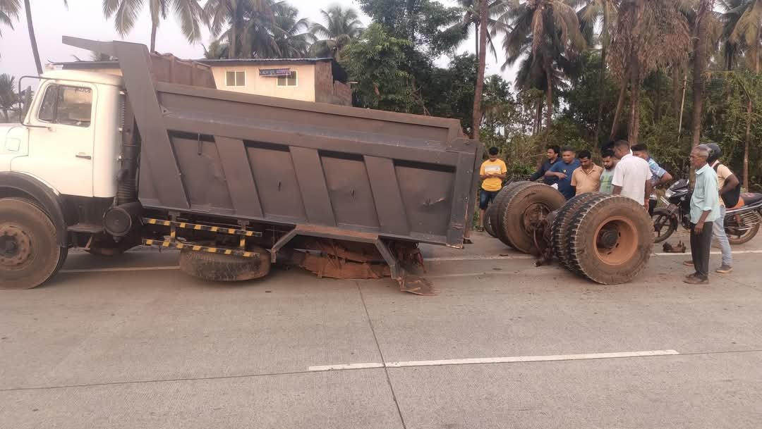 рдореБрдВрдмрдИ рдЧреЛрд╡рд╛ рдорд╣рд╛рдорд╛рд░реНрдЧ, рдиреЕрд╢рдирд▓ рд╣рд╛рдпрд╡реЗрд╡рд░ рдкрд┐рдВрдЧреБрд│реА рд╕рд╛рдИ рдордВрджрд┐рд░ рд╕рдореЛрд░ рд╡рд┐рд░реБрджреНрдз рджрд┐рд╢реЗрдиреЗ рдЬрд╛рдд рдЕрд╕рд▓реЗрд▓реНрдпрд╛ рдбрдВрдкрд░рдЪреА рдорд╛рдЧрдЪреА рджреЛрди рдЪрд╛рдХреЗ рддреБрдЯреВрди рдбрдВрдкрд░ рдкрд╛рд╕реВрди рдЕрд▓рдЧ рдЭрд╛рд▓реА рдорд╛рддреНрд░ рдбрдВрдкрд░ рдЪрд╛рд▓рдХрд╛рдиреЗ рдЖрд╡рд╛рдЬ рдЭрд╛рд▓реНрдпрд╛рдирдВрддрд░ рддрд╛рддреНрдХрд╛рд│ рдбрдВрдкрд░ рдерд╛рдВрдмреВрди рдкреНрд░рд╕рдВрдЧрд╛рд╡рдзрд╛рди рд░рд╛рдЦрд▓реЗ рдпрд╛рдд рдбрдВрдкрд░рдЪреЗ рдореЛрдареЗ рдиреБрдХрд╕рд╛рди рдЭрд╛рд▓реЗ рдЕрд╕реВрди рдХреЛрдгрддреАрд╣реА рдЬреАрд╡рд┐рддрд╣рд╛рдиреА рдЭрд╛рд▓реЗрд▓реА рдирд╛рд╣реА рдореЛрдард╛ рдЖрд╡рд╛рдЬ рдЭрд╛рд▓реНрдпрд╛рдиреЗ рдирд╛рдЧрд░рд┐рдХрд╛рдВрдиреА рддрд╛рддреНрдХрд╛рд│ рдзрд╛рд╡ рдШреЗрдд рдЧрд░реНрджреА рдХреЗрд▓реА.