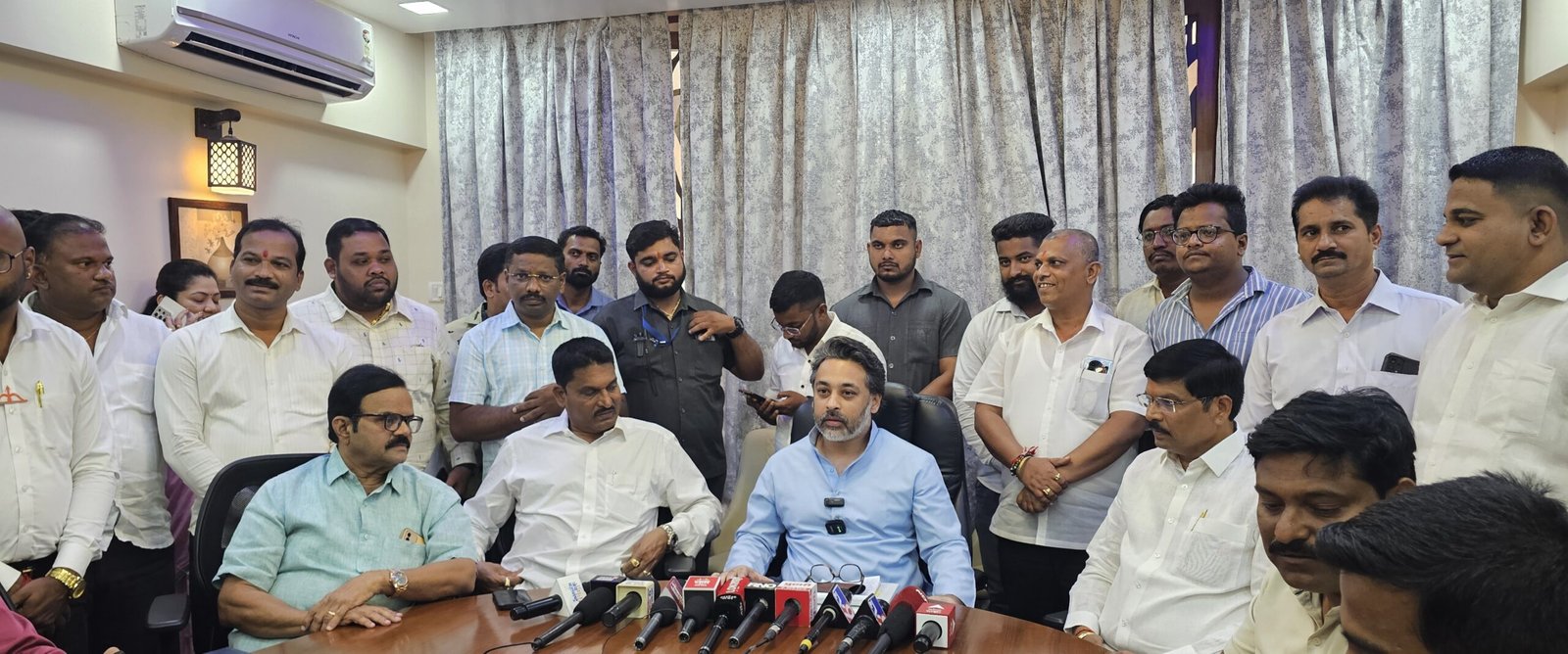 рдпрд╛ рдкрддреНрд░рдХрд╛рд░ рдкрд░рд┐рд╖рджреЗрдордзреНрдпреЗ рдЖрдорджрд╛рд░ рдирд┐рд▓реЗрд╢ рд░рд╛рдгреЗ рдпрд╛рдВрдиреА рд╕рд╛рдВрдЧрд┐рддрд▓реЗ рдХреА, рдЖрдореНрд╣рд╛ рд▓реЛрдХрдкреНрд░рддрд┐рдирд┐рдзреАрдВрдирд╛ рдЕрдиреЗрдХ рд╡реНрдпрдХреНрддреА рднреЗрдЯрдд рдЕрд╕рддрд╛рдд. рддрд╕реЗрдЪ рдмреЕрдирд░рд╣реА рд▓рд╛рд╡рдд рдЕрд╕рддрд╛рдд рддреНрдпрд╛рдВрдЪреНрдпрд╛рд╕реЛрдмрдд рдлреЛрдЯреЛ рдЕрд╕рдгреЗ рдЖрдгрд┐ рдмреЕрдирд░рд╡рд░ рддреНрдпрд╛рдВрдЪреНрдпрд╛рд╕реЛрдмрдд рдлреЛрдЯреЛ рд▓рд╛рд╡рдгреЗ рдореНрд╣рдгрдЬреЗ рддреЛ рдХрд╛рд╣реА рдЖрд░реЛрдкреА рд╣реЛрдд рдирд╛рд╣реА рдЖрдордЪреЗ рдиреЗрддреЗ рдЙрдкрдореБрдЦреНрдпрдордВрддреНрд░реА рдПрдХрдирд╛рде рд╢рд┐рдВрджреЗ, рд░рд╡реАрдВрджреНрд░ рдлрд╛рдЯрдХ рдпрд╛рдВрдЪреНрдпрд╛рд╕реЛрдмрдд рдЕрд╕рд▓реЗрд▓реЗ рдлреЛрдЯреЛ рдкреНрд░рд╕рд╛рд░рд┐рдд рдХрд░реВрди рдпрд╛ рдкреНрд░рдХрд░рдгрд╛рд╢реА рд╕рдВрдмрдВрдз рдЬреЛрдбрдгреНрдпрд╛рдЪрд╛ рдкреНрд░рдпрддреНрди рдорд╛рдЬреА рдЖрдорджрд╛рд░ рд╡реИрднрд╡ рдирд╛рдИрдХ рдХрд░рдд рдЖрд╣реЗрдд рддреНрдпрд╛рдВрдЪреНрдпрд╛рд╕реЛрдмрддрд╣реА рдЕрдиреЗрдХ рдлреЛрдЯреЛ рдпрд╛ рдкреНрд░рдХрд░рдгрд╛рддреАрд▓ рдЖрд░реЛрдкреАрдВрдЪреЗ рдЖрд╣реЗрдд рдЕрд╕реЗ рддреНрдпрд╛рдВрдиреА рд╕рд╛рдВрдЧреВрди рд╡реИрднрд╡ рдирд╛рдИрдХ рдпрд╛рдВрдиреА рдЖрддрд╛ рдЦрд╛рд▓рдЪреНрдпрд╛ рдерд░рд╛рдЪреЗ рд░рд╛рдЬрдХрд╛рд░рдг рд╕реЛрдбрд╛рд╡реЗ рдЖрдгрд┐ рд╡рд┐рдХрд╛рд╕рд╛рддреНрдордХ рд░рд╛рдЬрдХрд╛рд░рдг рдХрд░рд╛рд╡реЗ рдЕрд╕реЗ рддреНрдпрд╛рдВрдиреА рдпрд╛рд╡реЗрд│реА рд╕рд╛рдВрдЧрд┐рддрд▓реЗ.