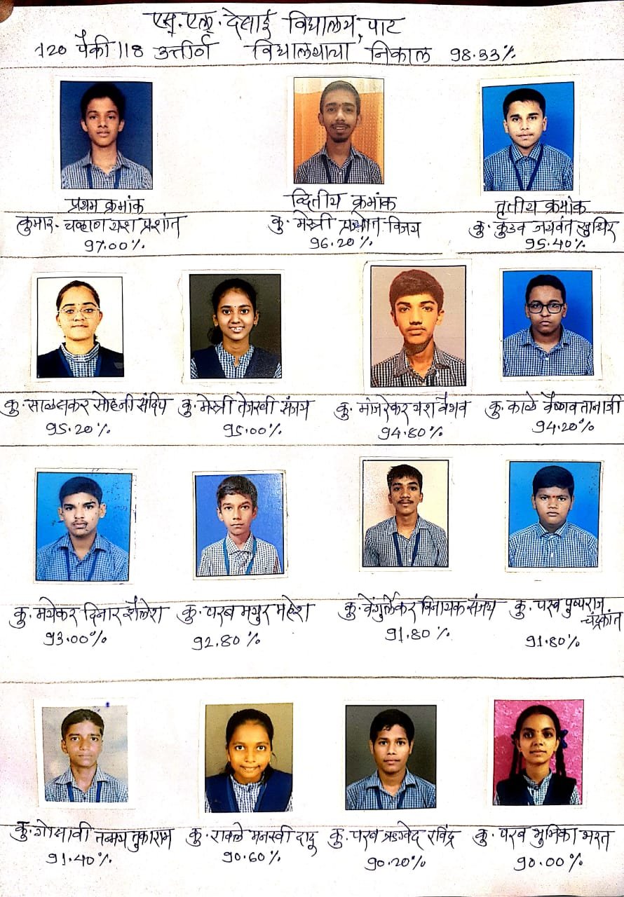 рдПрд╕. рдХреЗ. рдкрд╛рдЯреАрд▓ рд╢рд┐рдХреНрд╖рдг рдкреНрд░рд╕рд╛рд░рдХ рдордВрдбрд│ рдкрд╛рдЯ,рд╕рдВрдЪрд▓рд┐рдд рдПрд╕.рдПрд▓.рджреЗрд╕рд╛рдИ рд╡рд┐рджреНрдпрд╛рд▓рдп рдкрд╛рдЯ рдиреЗ рдорд╛рдзреНрдпрдорд┐рдХ рд╢рд╛рд▓рд╛рдВрдд рдкреНрд░рдорд╛рдгрдкрддреНрд░ рдкрд░реАрдХреНрд╖реЗрдд рдШрд╡рдШрд╡реАрдд рдпрд╢ рд╕рдВрдкрд╛рджрди рдХрд░реВрди рдЙрдЬреНрд╡рд▓ рдпрд╢рд╛рдЪреА рдкрд░рдВрдкрд░рд╛ рдХрд╛рдпрдо рд░рд╛рдЦрд▓реА рдЖрд╣реЗ.