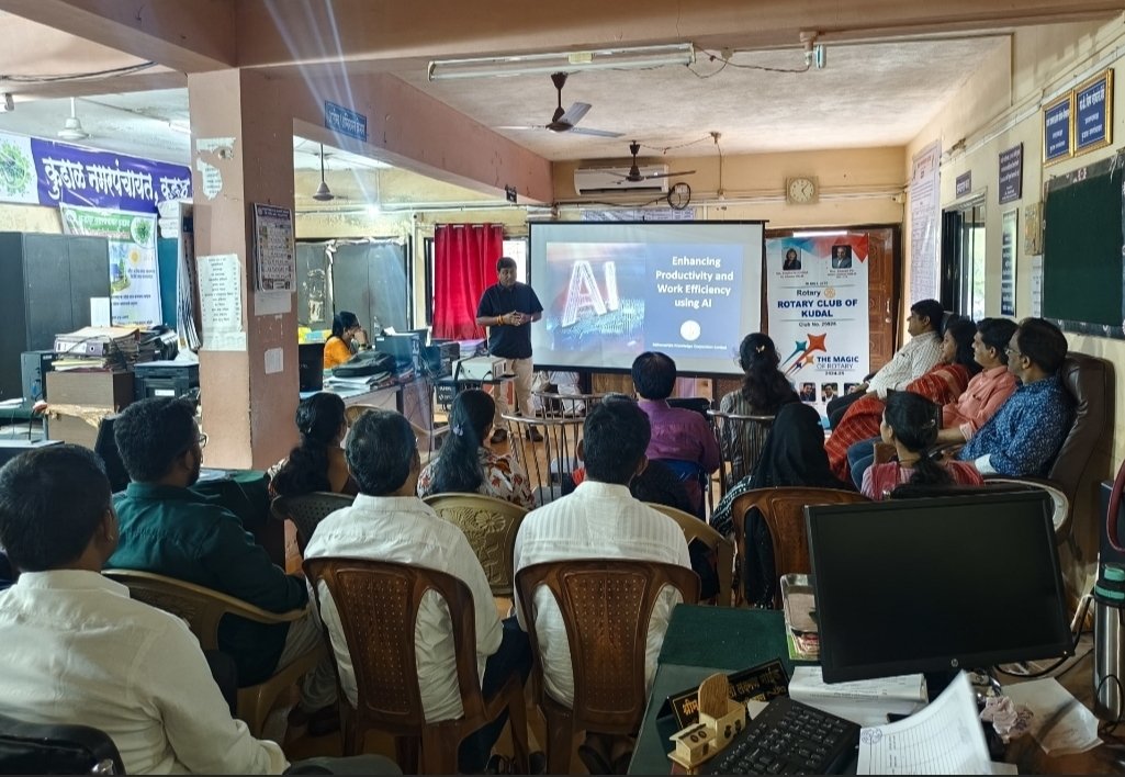 рджрд┐рд╡рд╕реЗрдВрджрд┐рд╡рд╕ рддрдВрддреНрд░рдЬреНрдЮрд╛рдирд╛рдордзреНрдпреЗ рдмрджрд▓ рд╣реЛрдд рдЖрд╣реЗ рдЖрдгрд┐ рд╣реЗ рдмрджрд▓ рдЖрдкрд▓реНрдпрд╛ рдЬреАрд╡рдирд╛рдд рд╕реБрджреНрдзрд╛ рдШрдбрдд рдЖрд╣реЗрдд. рддрдВрддреНрд░рдЬреНрдЮрд╛рдирд╛рдордзреАрд▓ рдирд╡реАрди рдПрдЖрдп рдЕрдзреНрдпрд╛рдп рд╕реБрд░реВ рдЭрд╛рд▓рд╛ рдЖрд╣реЗ. рдпрд╛ рдорд╛рдзреНрдпрдорд╛рддреВрди рдЖрдкрд▓реНрдпрд╛рд▓рд╛ рдХреЛрдгрддреНрдпрд╛рд╣реА рдХрд╛рдордХрд╛рдЬрд╛рдд рд╕реБрд▓рднрддрд╛ рдЖрдгрд┐ рдЧрддрд┐рдорд╛рдирддрд╛ рдирд┐рд░реНрдорд╛рдг рдХрд░рддрд╛ рдпреЗрддреЗ. рд╣реА рдЧрддрд┐рдорд╛рдирддрд╛ рд╢рд╛рд╕рдХреАрдп рдХрд╛рдорд╛рдд рдпреЗрдгреНрдпрд╛рд╕рд╛рдареА рдПрдордХреЗрд╕реАрдПрд▓ рд╡ рд░реЛрдЯрд░реА рдХреНрд▓рдмрдЪреНрдпрд╛ рдорд╛рдзреНрдпрдорд╛рддреВрди рдХреБрдбрд╛рд│ рдирдЧрд░рдкрдВрдЪрд╛рдпрддреАрдордзреНрдпреЗ рд╕рд░реНрд╡ рдХрд░реНрдордЪрд╛рд▒реНрдпрд╛рдВрдирд╛ рдПрдЖрдп рдЪреЗ рдкреНрд░рд╢рд┐рдХреНрд╖рдг рджреЗрдгреНрдпрд╛рдд рдЖрд▓реЗ рдпрд╛рд╡реЗрд│реА рдирдЧрд░рд╛рдзреНрдпрдХреНрд╖ рдкреНрд░рд╛рдЬрдХреНрддрд╛ рдмрд╛рдВрджреЗрдХрд░, рдореБрдЦреНрдпрд╛рдзрд┐рдХрд╛рд░реА рдЕрд░рд╡рд┐рдВрдж рдирд╛рддреВ, рд░реЛрдЯрд░реА рдХреНрд▓рдмрдЪреЗ рдЕрдзреНрдпрдХреНрд╖ рдбреЙ. рд╕рдВрдЬрдп рдХреЗрд╕рд░реЗ, рдЕрдорд┐рдд рд╡рд│рдВрдЬреВ, рд░рд╛рдЬреВ рдкрд╡рд╛рд░ рддрд░ рд╣реЗ рдкреНрд░рд╢рд┐рдХреНрд╖рдг рдПрдордХреЗрд╕реАрдПрд▓рдЪреЗ рд╕рдордиреНрд╡рдпрдХ рдкреНрд░рдгрдп рддреЗрд▓реА рд╡ рд╡рд┐рдШреНрдиреЗрд╢ рдЦрд╛рдВрдбреЗрдХрд░ рдпрд╛рдВрдиреА рджрд┐рд▓реЗ.