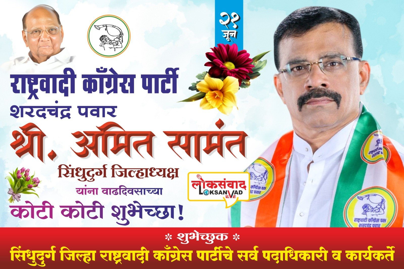 राष्ट्रवादी काँग्रेस पार्टी सिंधुदुर्ग सर्व पदाधिकारी आणि सर्व कार्यकर्ते.