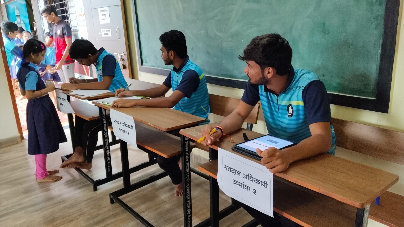 рдХреИ.рд░рд╛рдпрд╕рд╛рд╣реЗрдм рдбреЙ. рд░рд╛рдордЬреА рдзреЛрдВрдбрдЬреА рдЦрд╛рдиреЛрд▓рдХрд░ рдХреЗрдВрджреНрд░рд╢рд╛рд│рд╛ рдорда рдирдВ рез рд╢рд╛рд│реЗрддреАрд▓ рд╡рд┐рджреНрдпрд╛рд░реНрдереНрдпрд╛рдВрдЪреА рд╢рд╛рд▓реЗрдп рдордВрддреНрд░рд┐рдордВрдбрд│ рдирд┐рд╡рдбрдгреБрдХ EVM рддрдВрддреНрд░рдЬреНрдЮрд╛рди рд╡рд╛рдкрд░реВрди рдШреЗрдгреНрдпрд╛рдд рдЖрд▓реА. рдпрд╛рдореБрд│реЗ рд╡рд┐рджреНрдпрд╛рд░реНрдереНрдпрд╛рдВрдирд╛ рдЖрдзреБрдирд┐рдХ рдорддрджрд╛рди рдпрдВрддреНрд░рдгреЗрдЪрд╛ рдкреНрд░рддреНрдпрдХреНрд╖ рдЕрдиреБрднрд╡ рдорд┐рд│рд╛рд▓рд╛. рддреНрдпрд╛рдВрдЪреНрдпрд╛рдд рдбрд┐рдЬрд┐рдЯрд▓ рд╕рд╛рдХреНрд╖рд░рддрд╛ рд╡рд╛рдврдгреНрдпрд╛рд╕ рдорджрдд рдорд┐рд│рд╛рд▓реА.